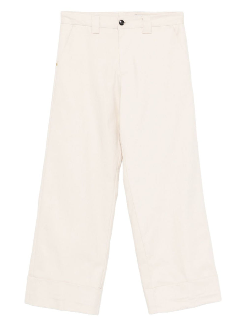 WHITE SAND Trousers Beige — Silk‑Blend Flared Trousers
