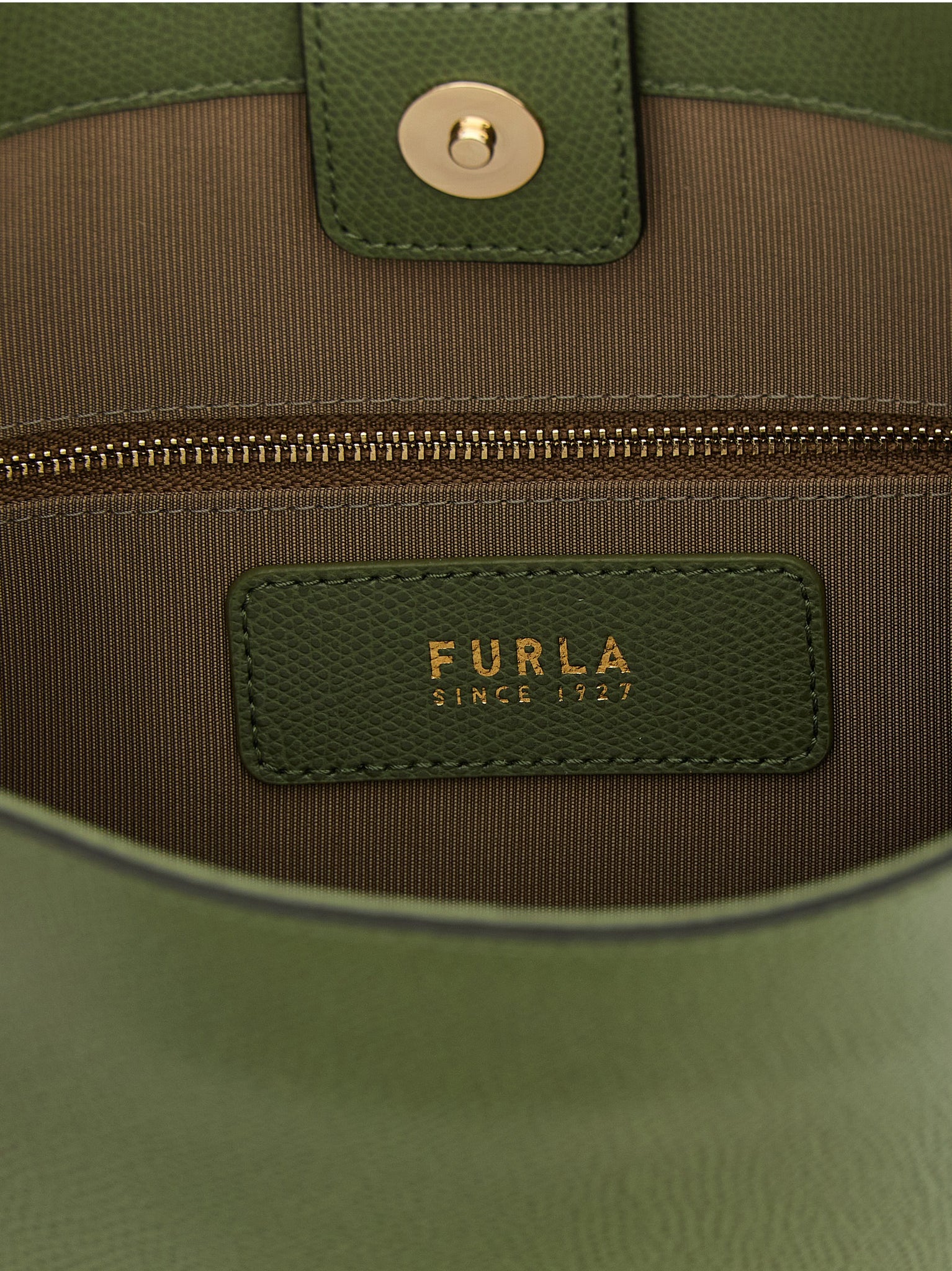The Furla Roxie Small Bucket Bag blends compact functionality with polished Italian leather and a subtle grain effect that resists everyday wear. An adjustable shoulder strap and flexible bottom keep items secure and comfortable, while the internal magnetic closure and removable charm add practical refinement. At W 23.5 x H 25 x D 16.5 cm this green shoulder bag balances structure and ease for daily use.