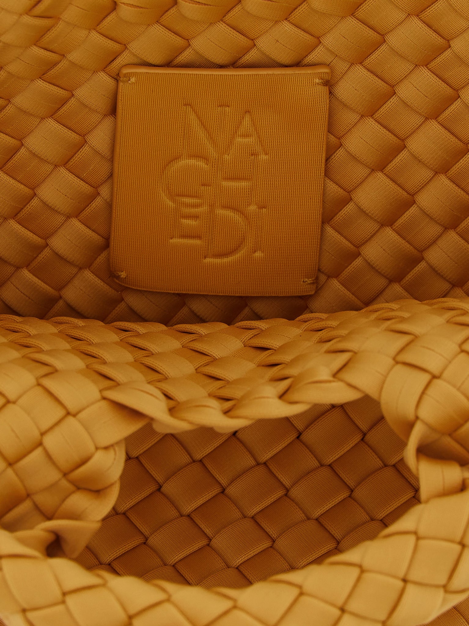 Hand-woven neoprene st. Barths petit shopping, Double fixed handle, Tone-on-tone logo patch on the side, Adjustable and removable tape shoulder strap, And removable matching clutch. Handcrafted product, Any imperfections are to be considered characteristics of uniqueness. Size and Fit - W 22.9 x H 15.2 x D 12.7 cm