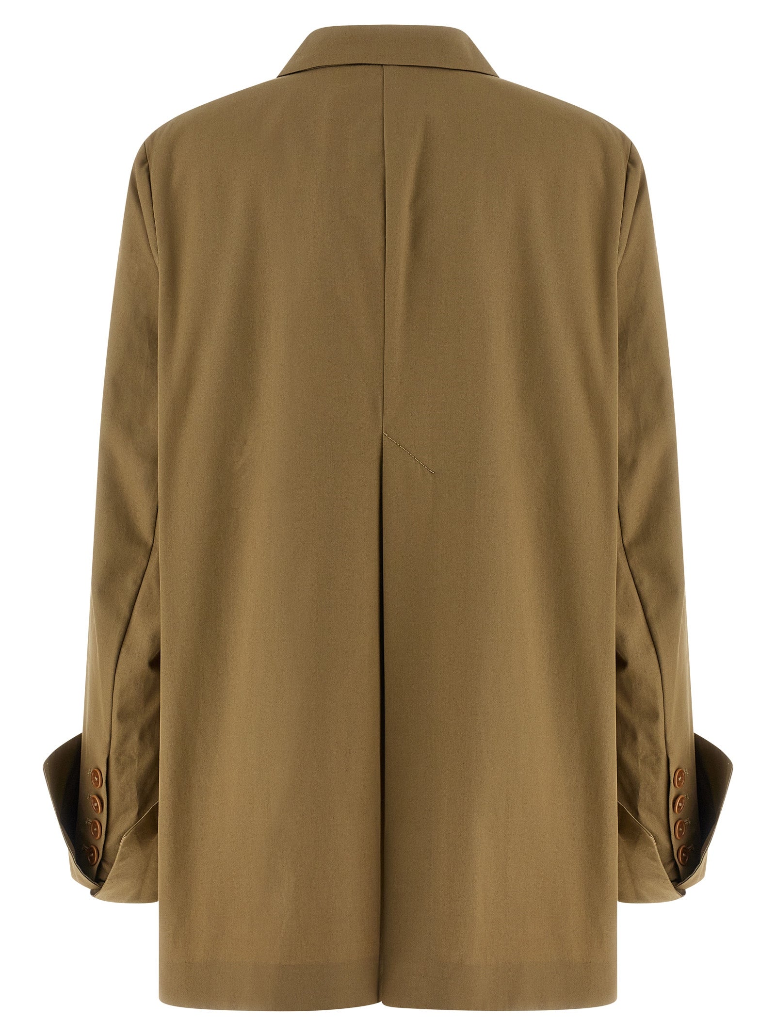 'birkin' single-breasted deconstructed cotton blazer with front button closure, Mirror lapels, Breast pocket, Flap pockets, Long sleeves with double layer cuffs with buttons and buttonholes and turned-up, Wide back split. Size and Fit - True to size fit