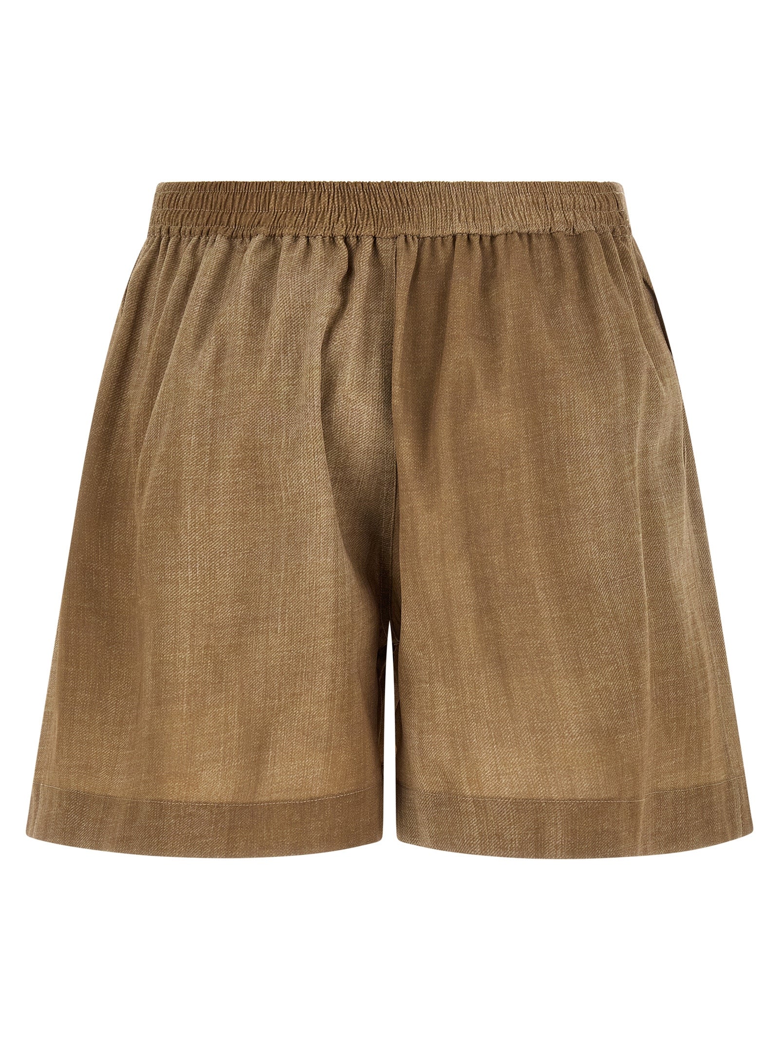 Marocain shorts with sand denim print, Double front pincer, Zip and button closure, Elastic waistband at the back, Pockets. Size and Fit - true to size fitMade in: Italy