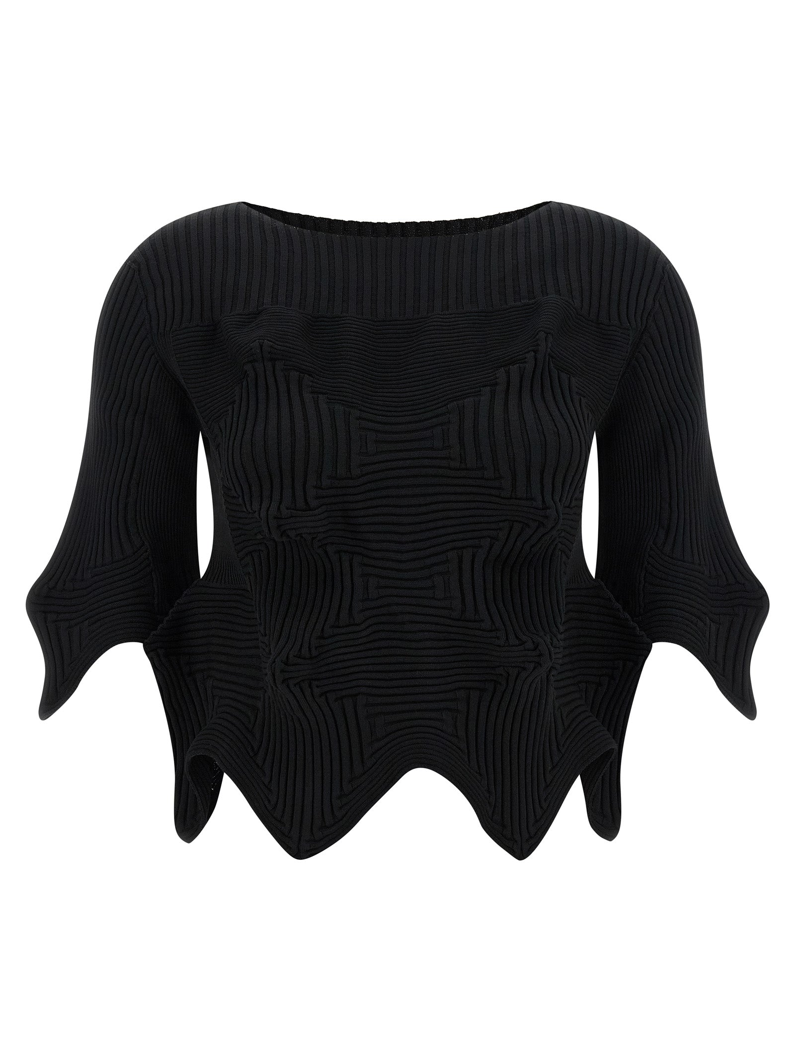 Issey Miyake Linkage Top — Cropped Black Knit (Women)