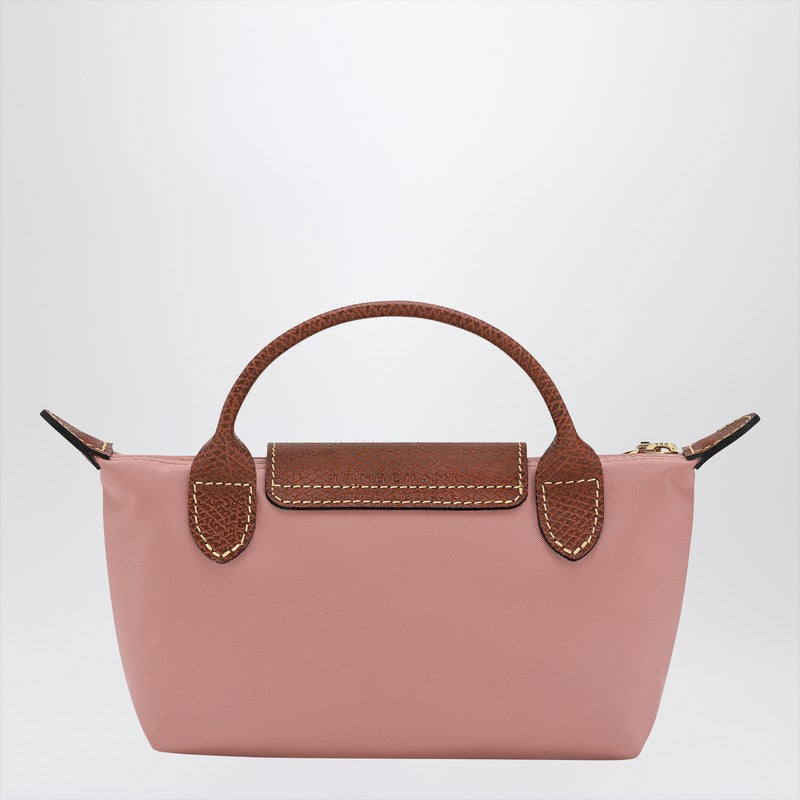 Pink tea-coloured recycled fabric mini bag by Longchamp, featuring a top handle, zip fastening with flap and press studs and leather details. Size and Fit - Width 17 cm x Height 11 cm x Depth 5,5 cm Handle drop: 6 cm