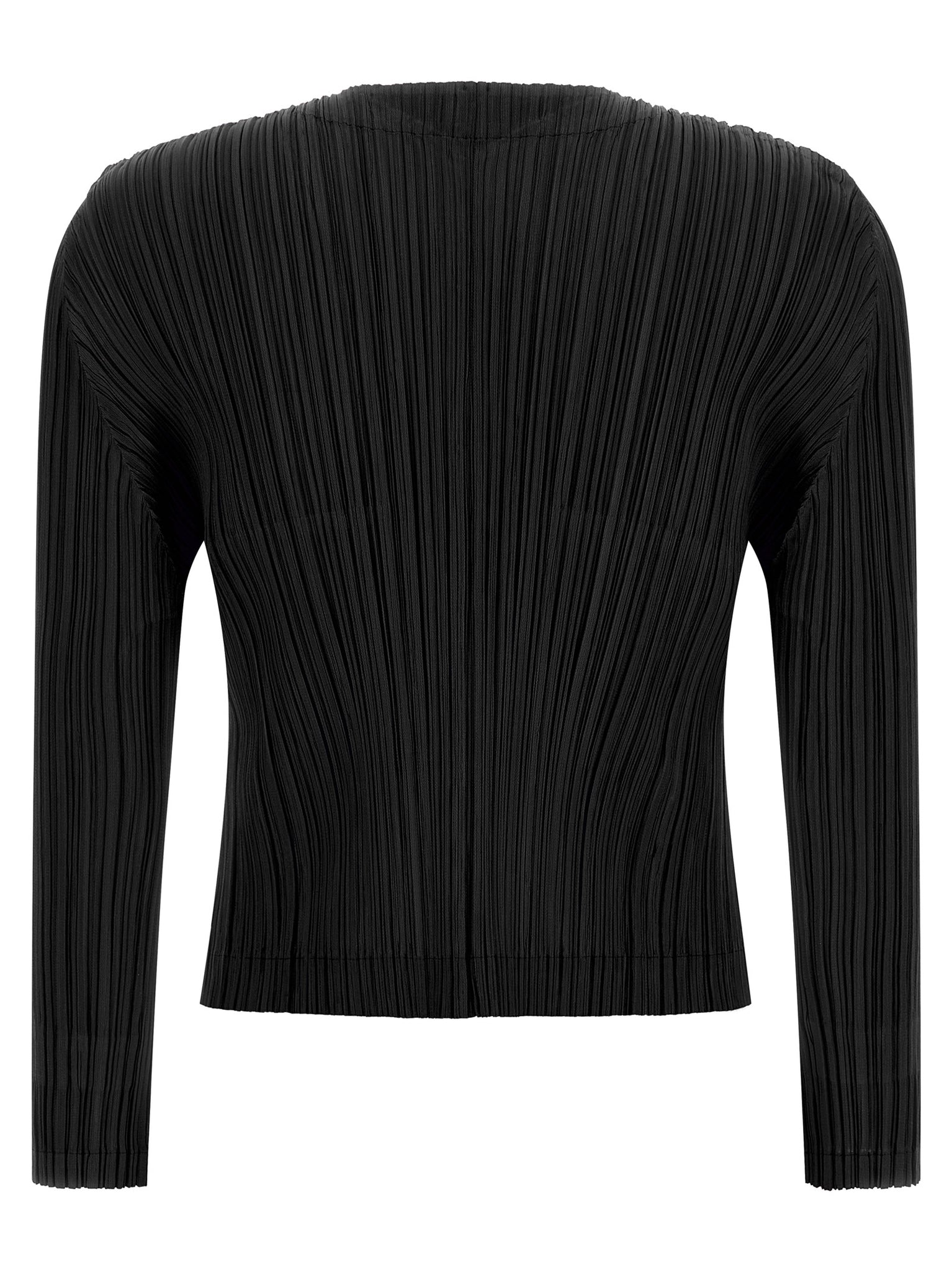 This pleated cardigan from Pleats Please Issey Miyake offers a lightweight, structured layer that smooths and moves with the body while keeping a refined silhouette. The round neckline and front button closure create easy layering and a neat appearance, and side pockets add practical storage without bulk. Designed in a true-to-Japan size fit, the long sleeves and signature pleating deliver consistent drape and low-maintenance wear.
