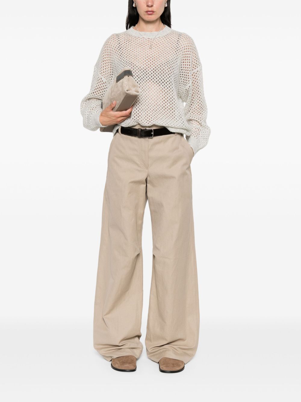 Grey Wool Open‑Knit Sweater — Brunello Cucinelli