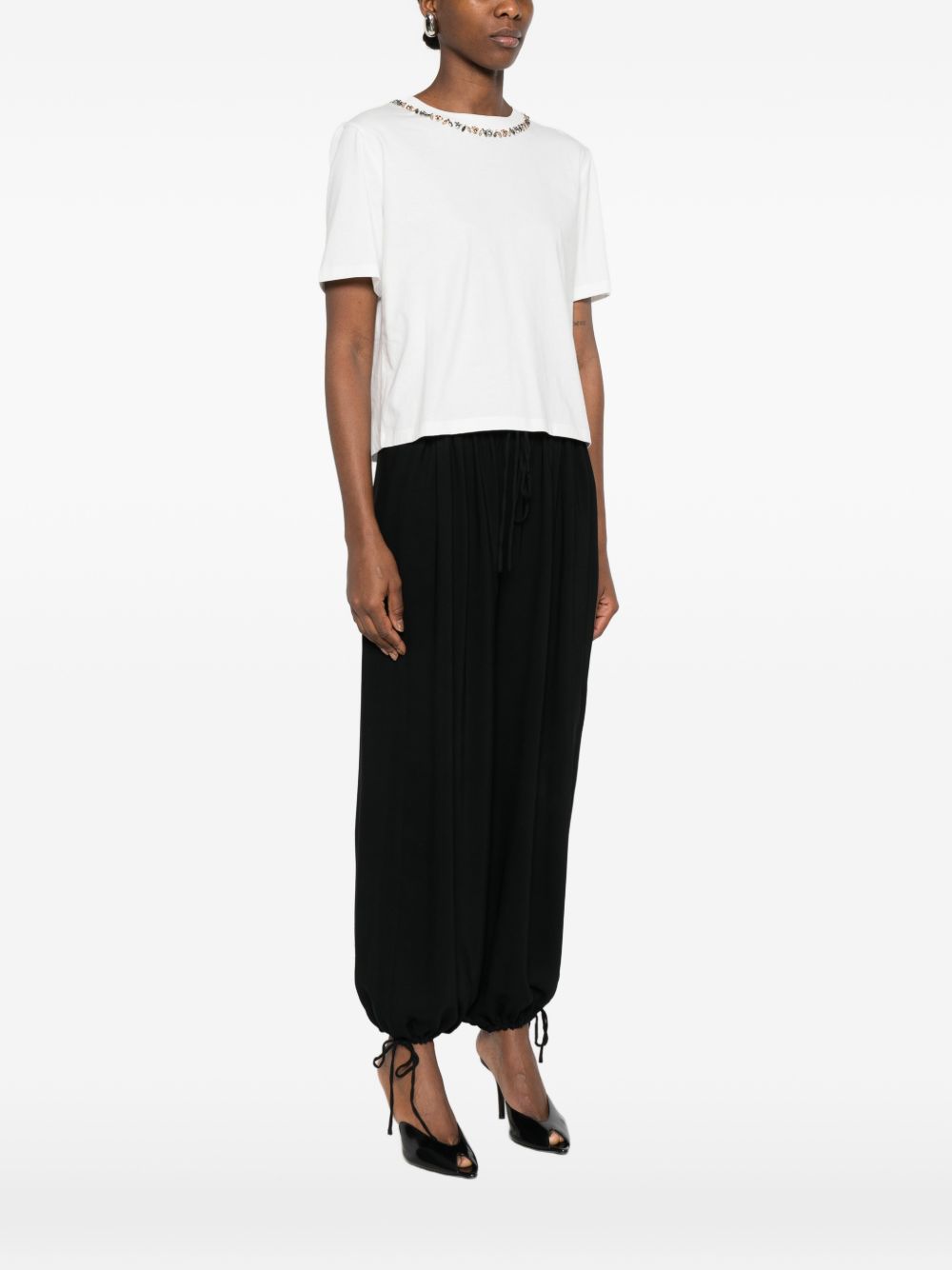 white embellishment crew neck short sleeves Embroidered cotton t-shirt