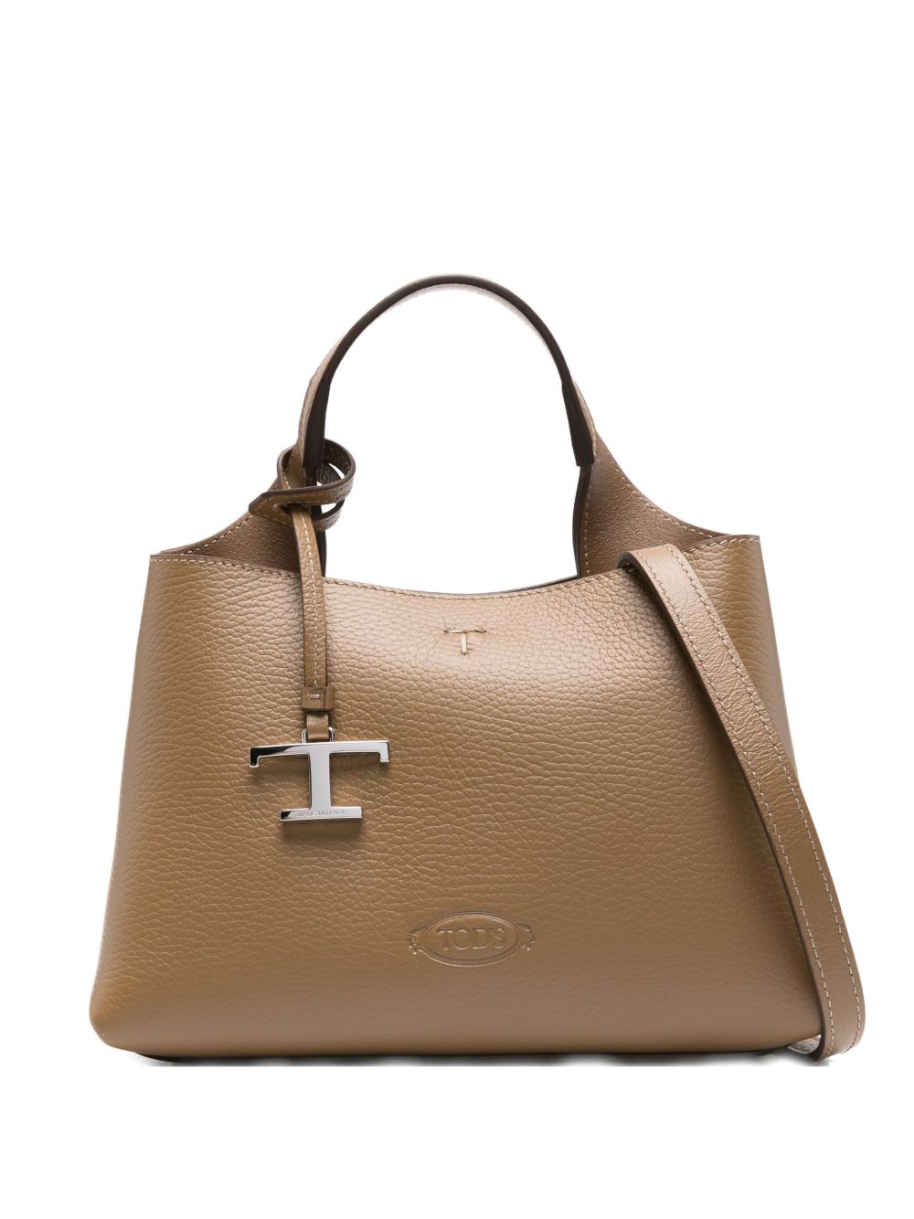 green calf leather T-logo detail top handle zip fastening internal zip pocket Micro leather shopping bag Size and Fit - DEPTH: 14.0 Centimetres. HANDLE: 9.0 Centimetres. HEIGHT: 16.0 Centimetres. WIDTH: 24.0 Centimetres.
