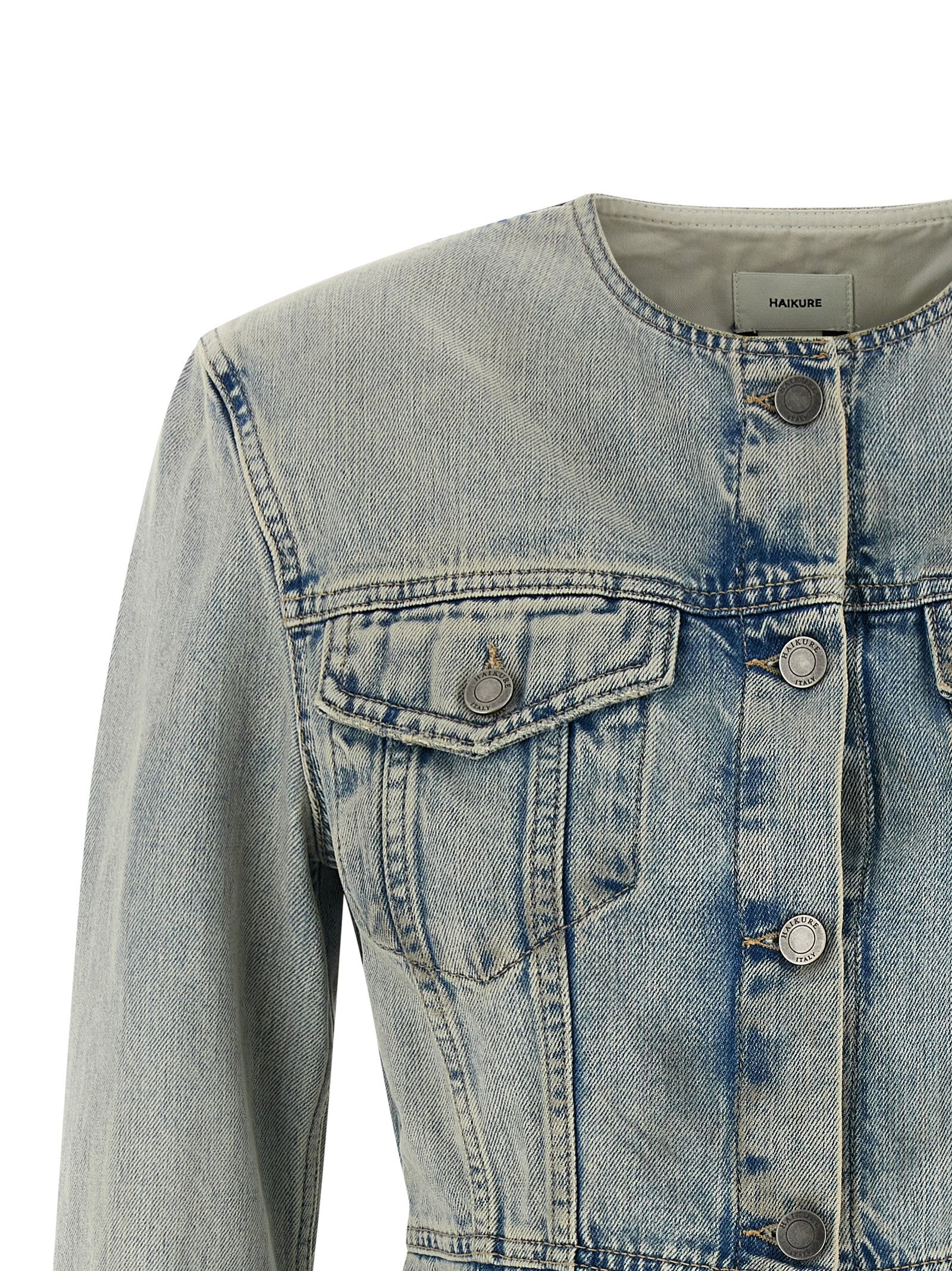 Haikure Temple Jacket — Light Blue Denim Jacket for Women
