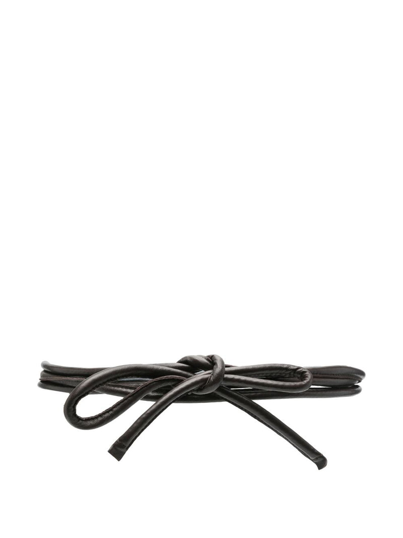 cedar brown self-tie fastening adjustable fit Filo leather belt Size and Fit - TOTAL LENGTH: 255.0 Centimetres. WIDTH: 1.0 Centimetres.Made in: Italy