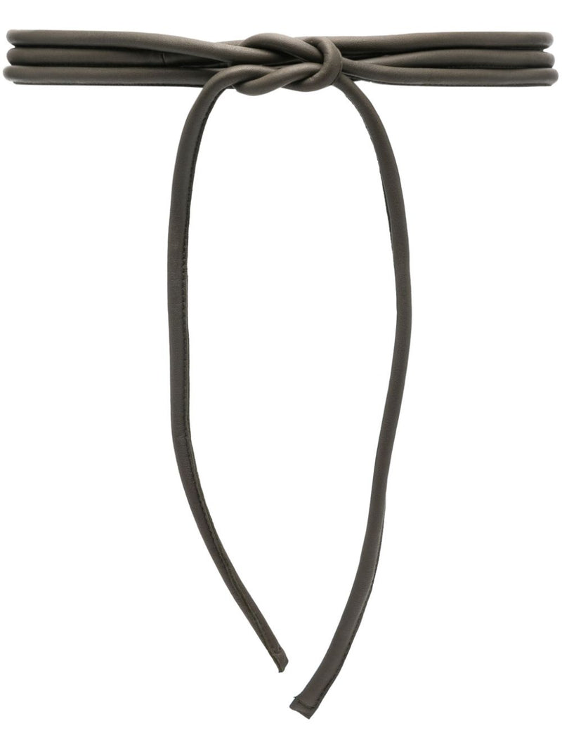 dark khaki green leather padded design rolled design self-tie fastening Filo leather belt Size and Fit - TOTAL LENGTH: 226.0 Centimetres. WIDTH: 1.0 Centimetres.Made in: Italy