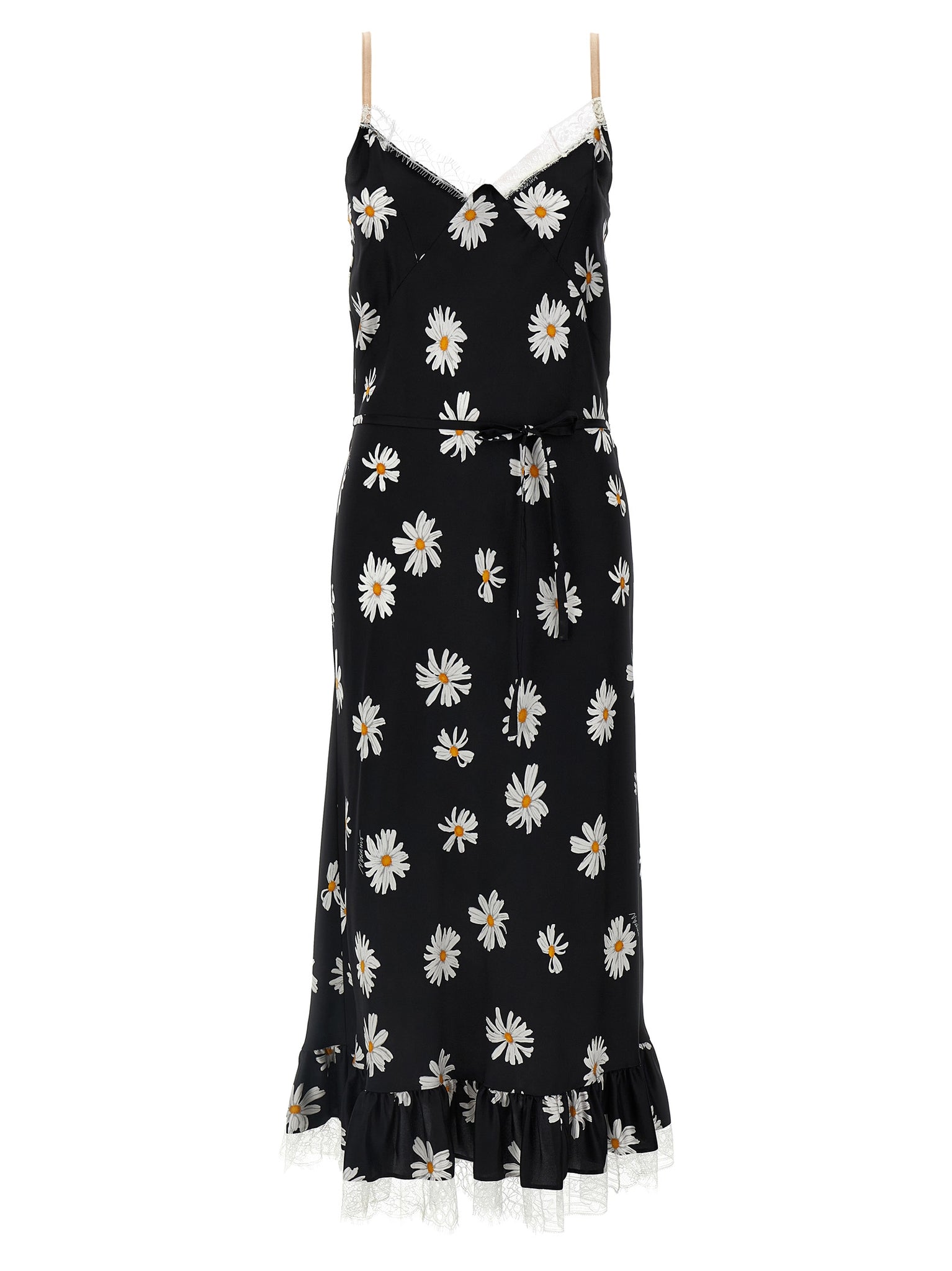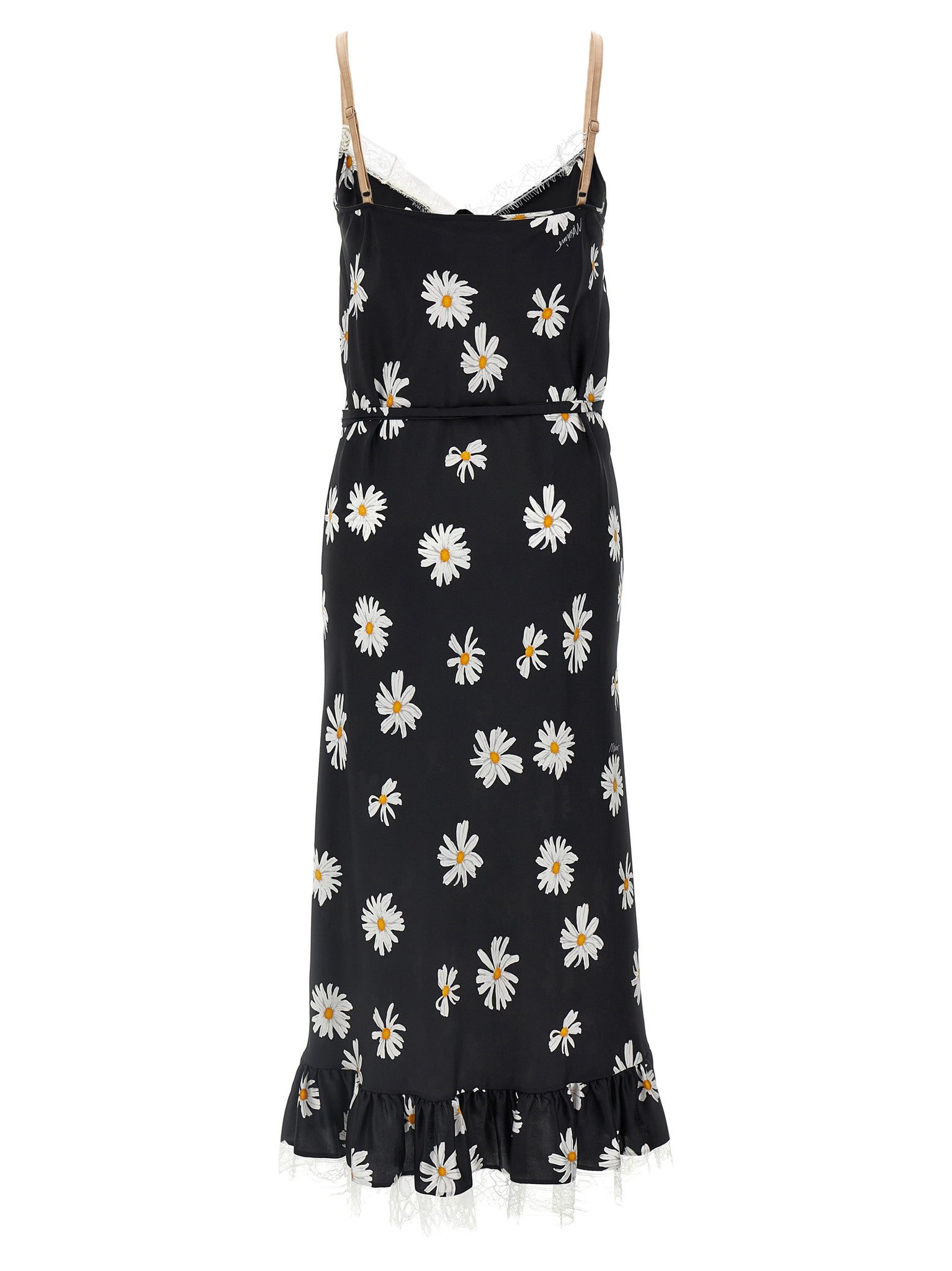 'lingerie' silk dress with all-over 'Margherite' print, drawstring at the waist, V-neck, lace details. Size and Fit - True to size fit