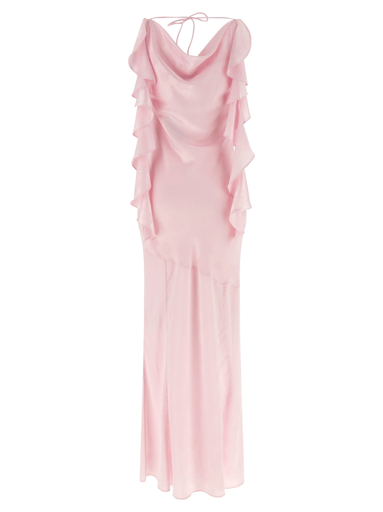 Long 'maxi waterfall' sleeveless dress in silk-effect fabric with ruffled shoulder straps, Knotted laces. Size and Fit - True to size fit German sizing