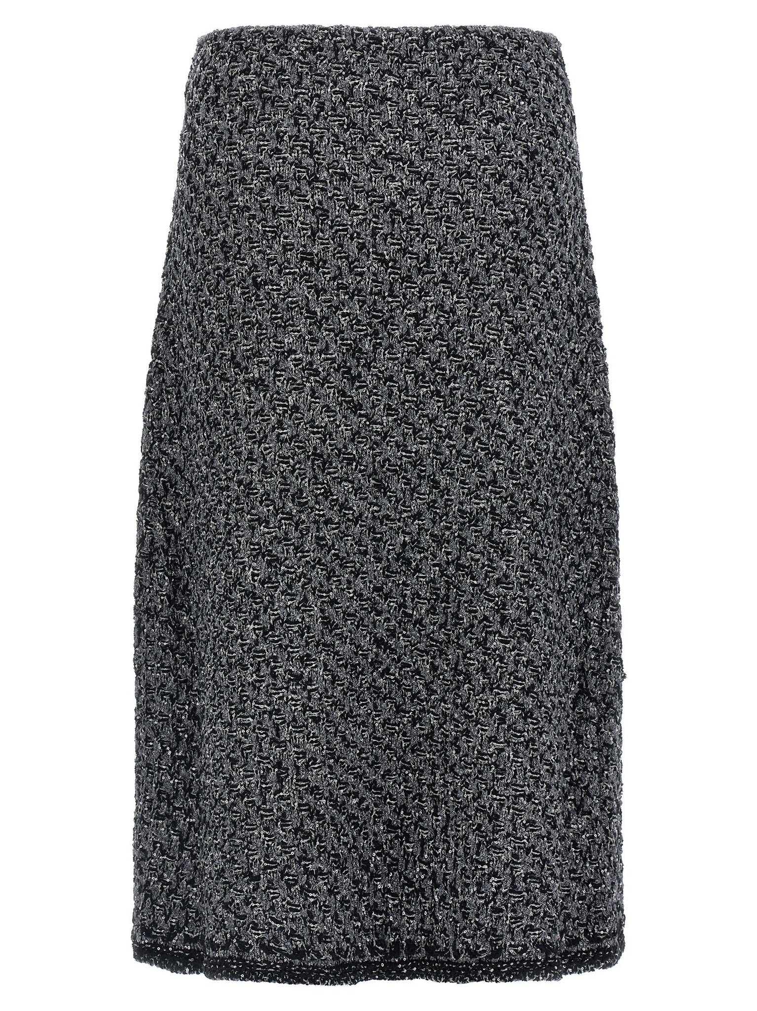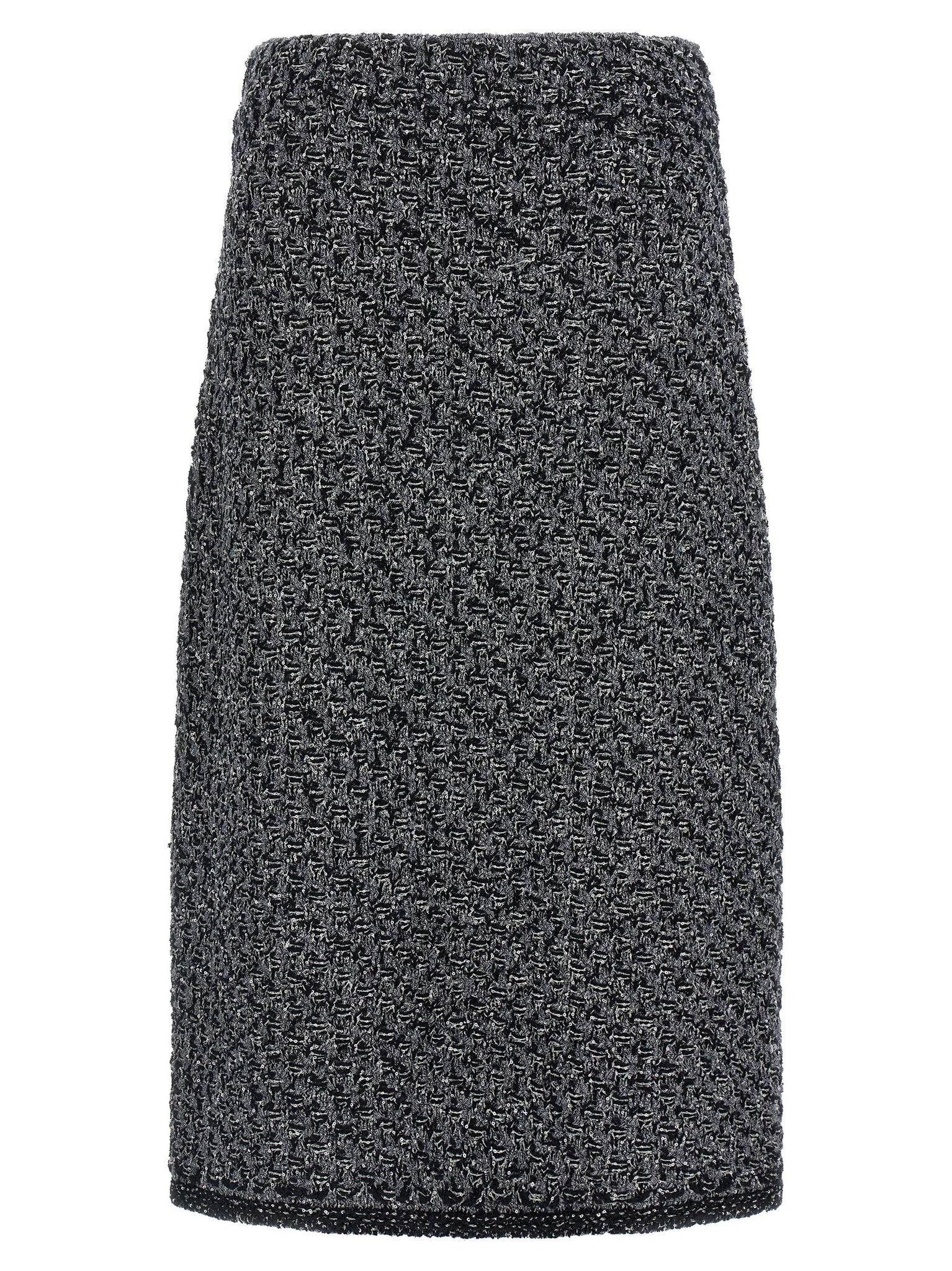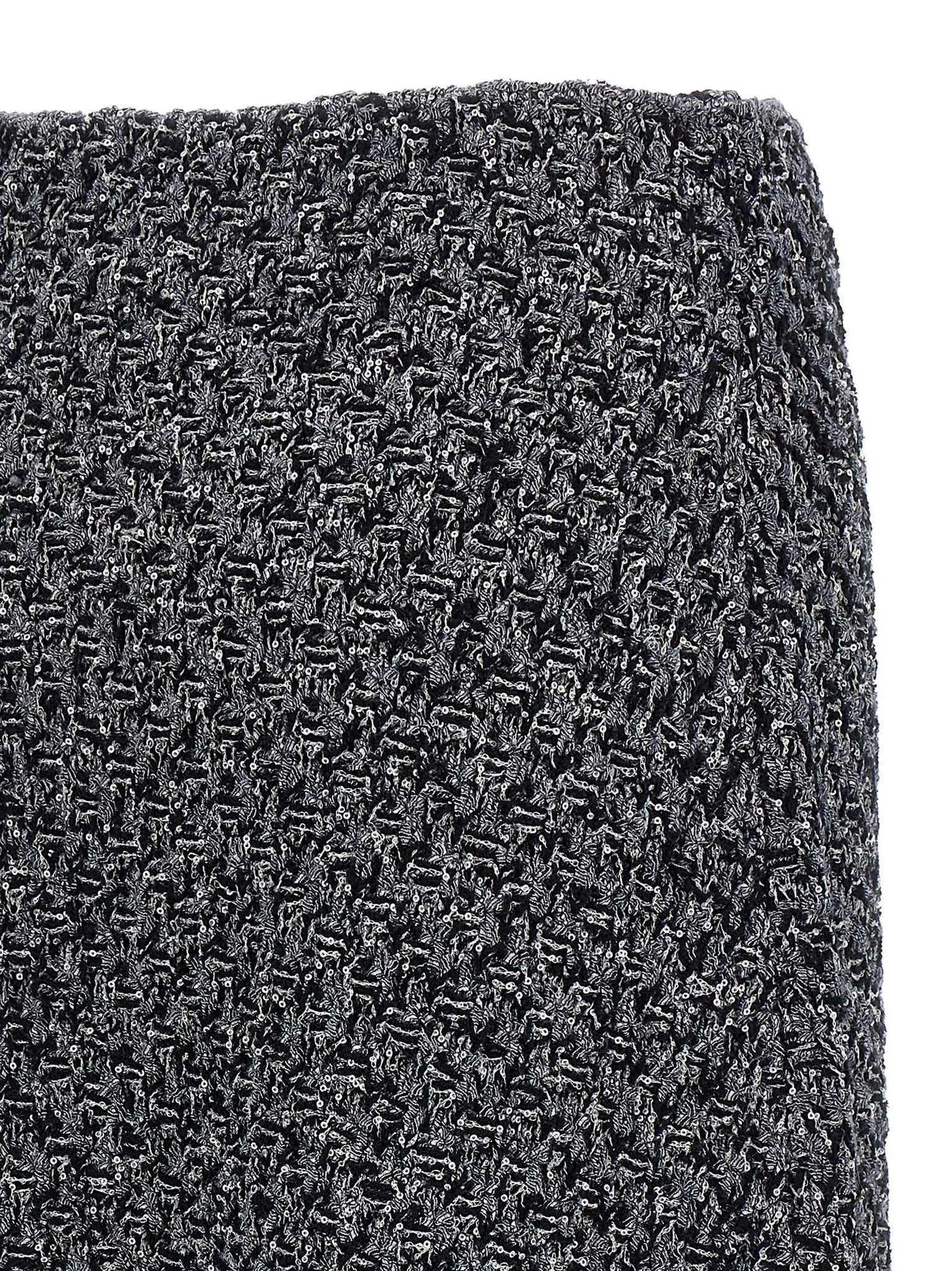 Midi skirt in tweed denim effect with micro sequins, Trapezoid model slightly flared at the bottom, Elastic waistband. Size and Fit - True to size fitMade in: Italy