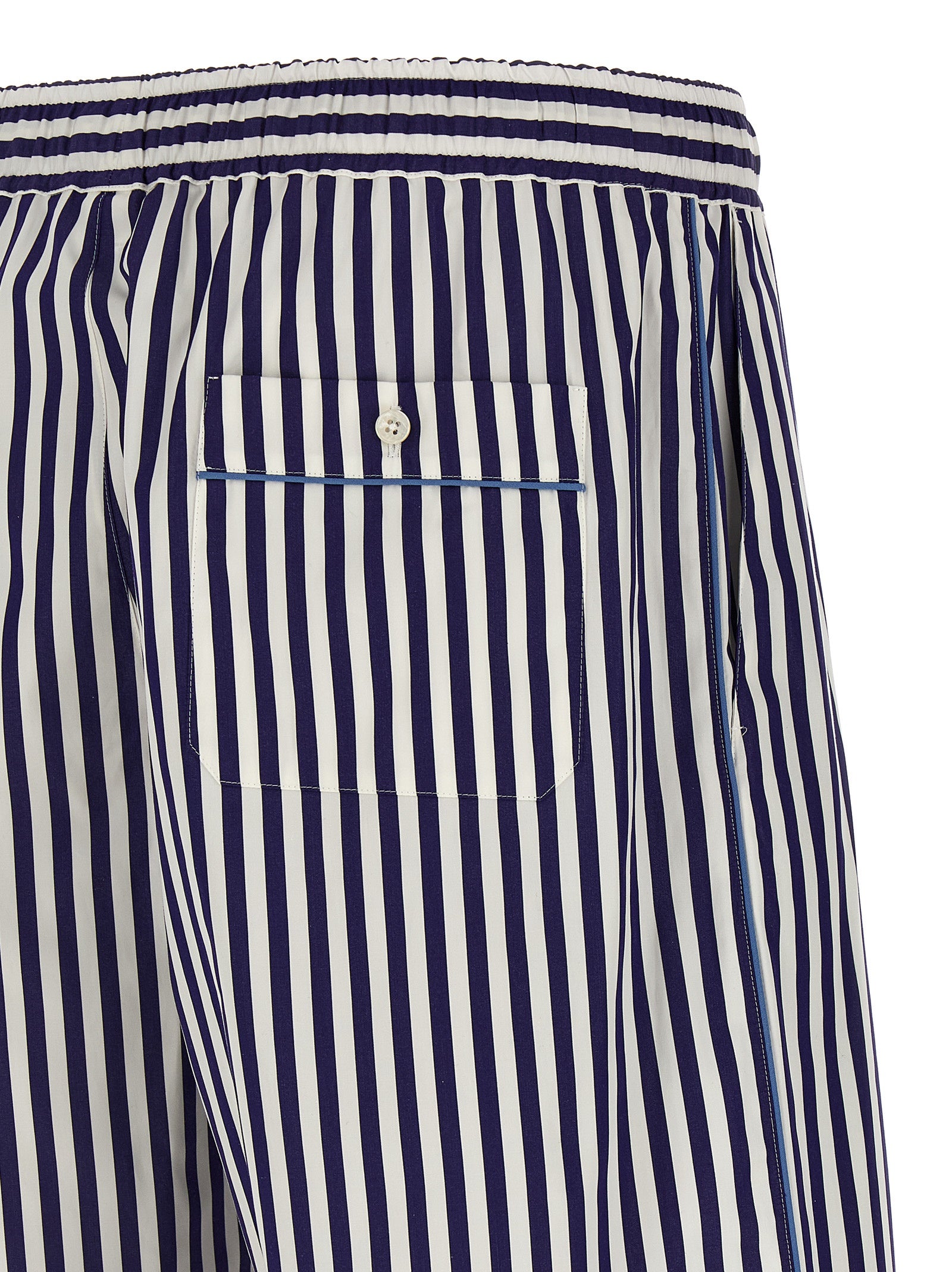 Bermuda shorts in striped cotton and silk blend poplin shorts, wide leg, drawstring elastic waistband, trompe l'oeil flap, pockets. Size and Fit - true to size fit