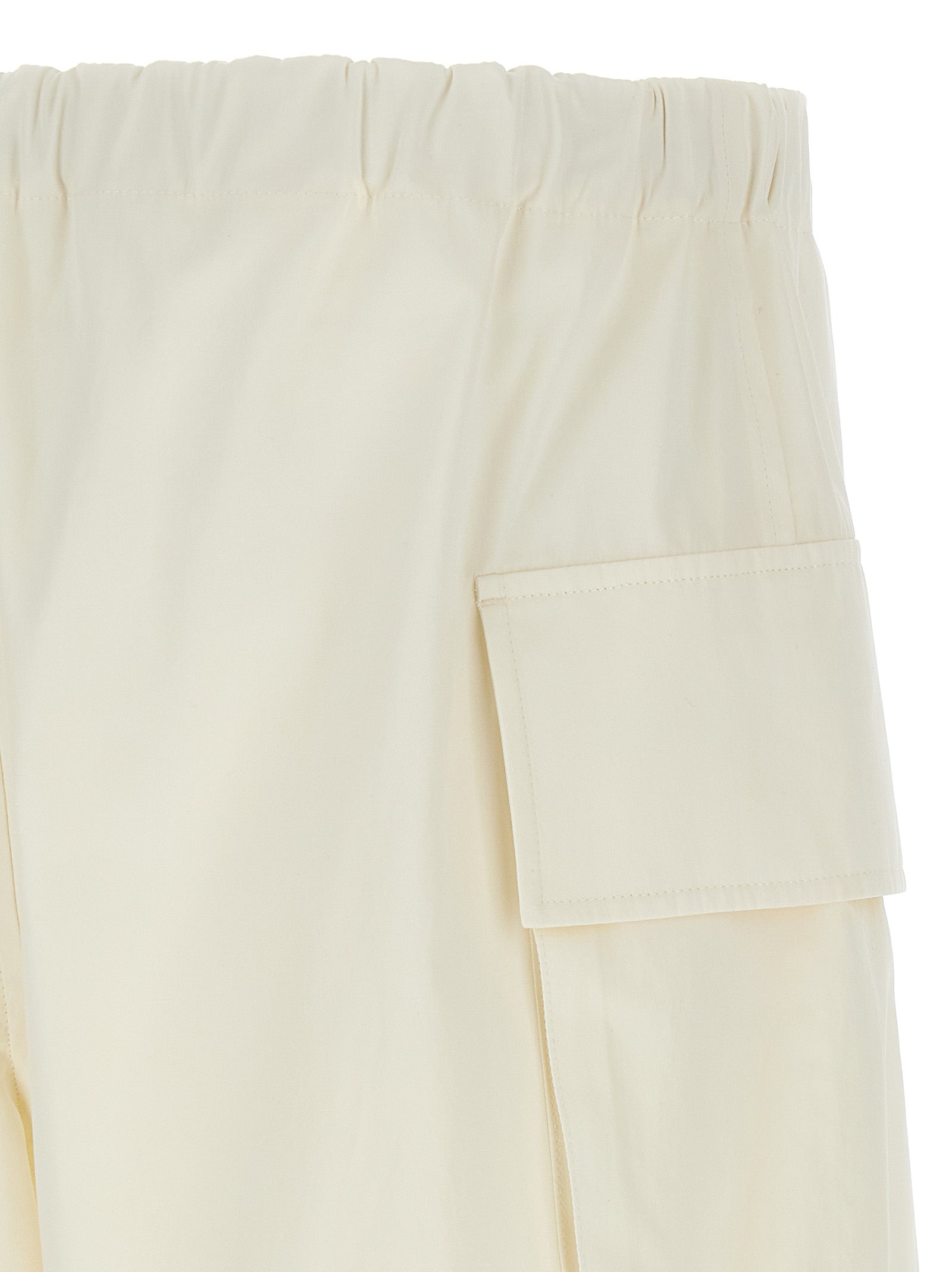 '94' cotton poplin bermuda shorts with low crotch style, tone-on-tone logo embroidery on the front, cargo pockets, adjustable drawstring at the waist, zip and front button closure. Size and Fit - true to size fit