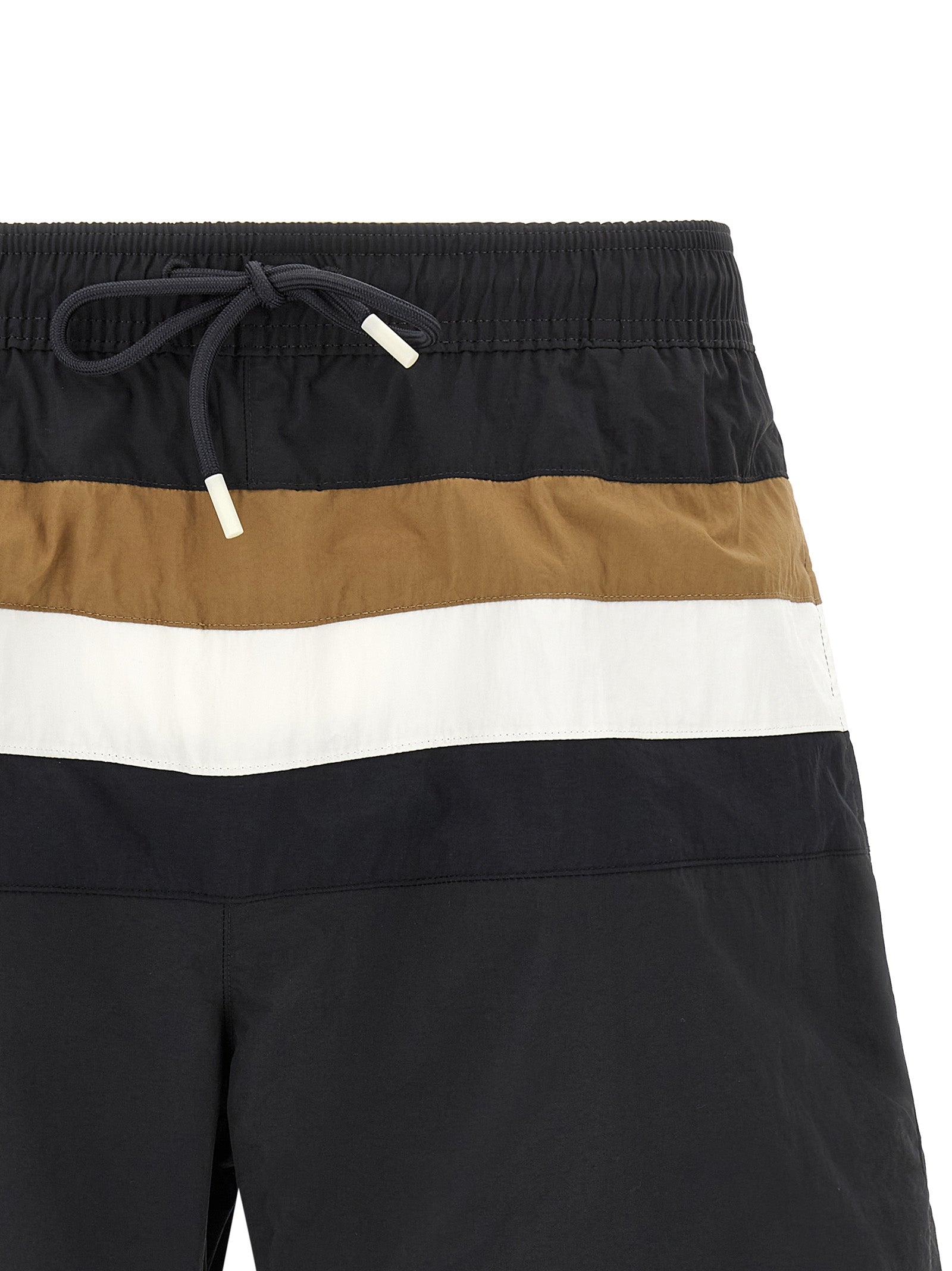 'louis' swimsuit in quick-drying fabric with crumpled effect with contrasting front details, Logo print, Drawstring elastic waistband, Pockets, Inner mesh briefs. Size and Fit - true to size fit