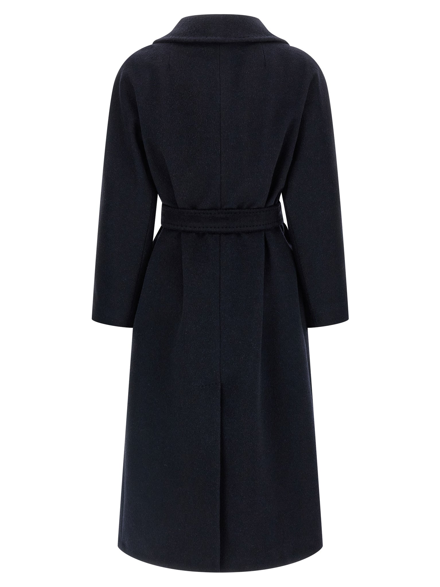 'Tempera' long coat in wool and alpaca blend fabric with flared silhouette, robe style, lapel collar, pockets, long kimono sleeves, back split, viscose blend lining, removable belt. Size and Fit - true to size fit