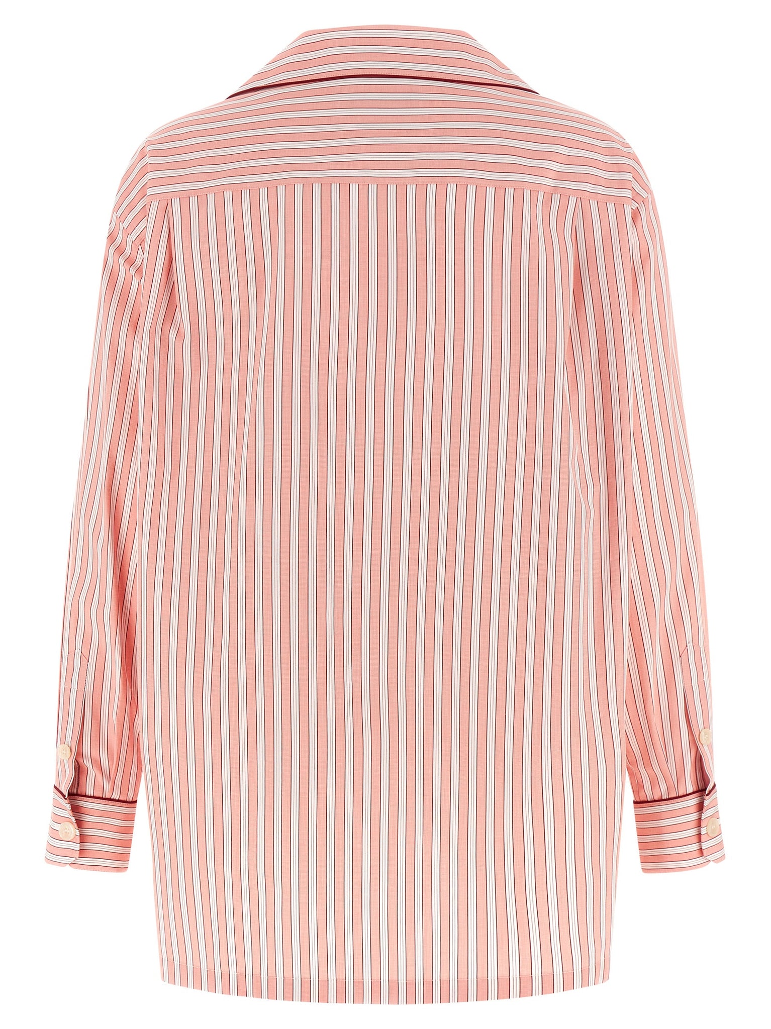 Striped cotton and silk blend poplin shirt, Pajama model, 'vanity' collar, Logo patch pocket, Front mother-of-pearl button closure, Long sleeves with cuffs and dropped shoulder, Side slits on the hem. Size and Fit - Comfort fitMade in: Italy