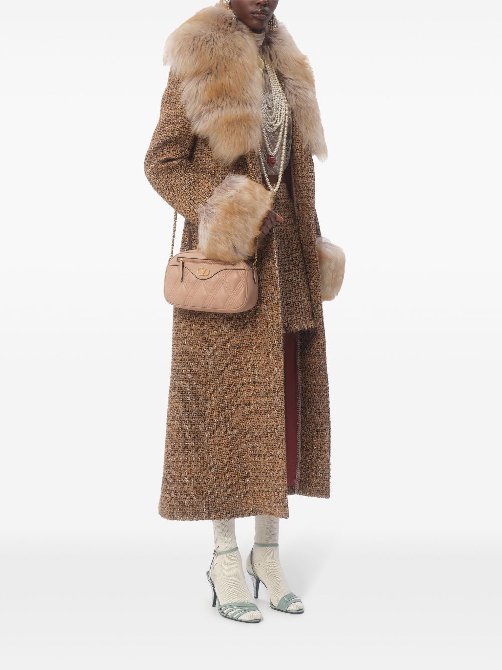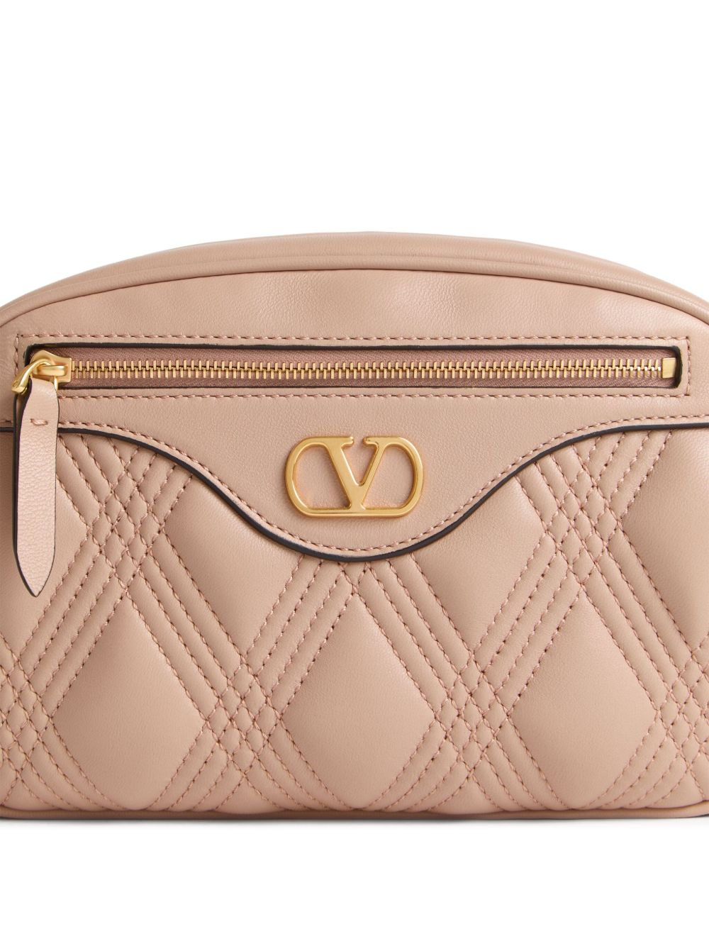 beige calf leather tonal stitching top zip fastening front zip-fastening compartment signature V logo plaque chain-link shoulder strap main compartment internal card slots camera bag Quiltie 67 leather camera bag Size and Fit - Width 9,45 in / 24 cm Height 6,3 in / 16 cm Depth 2,56 in / 6,5 cm