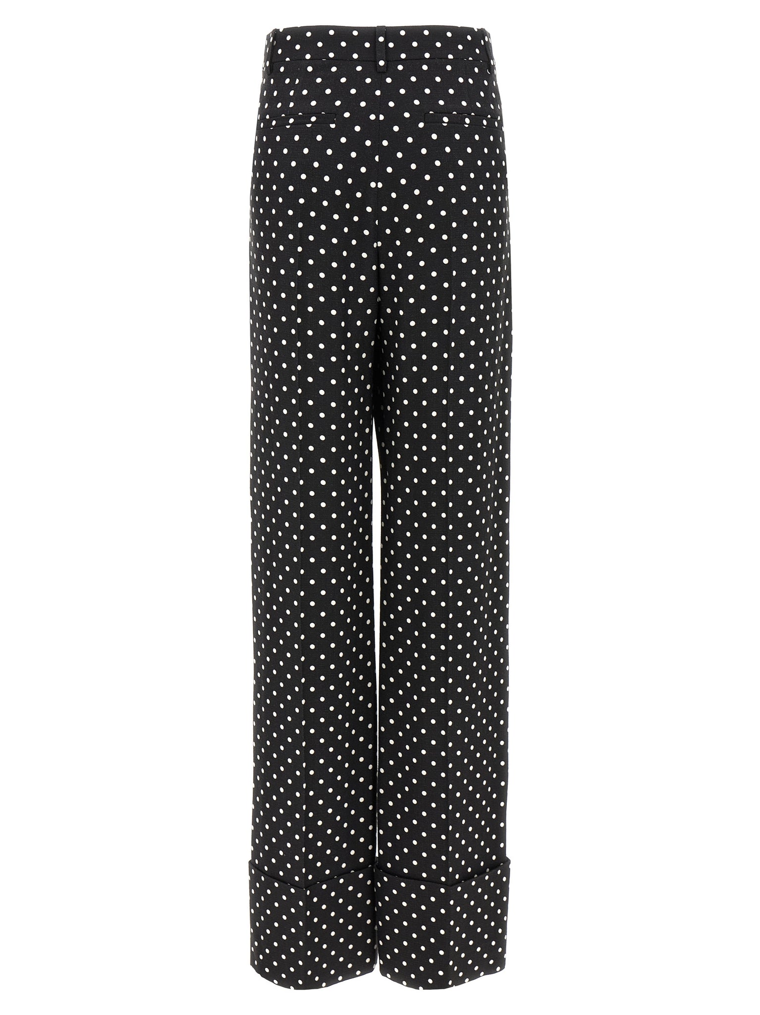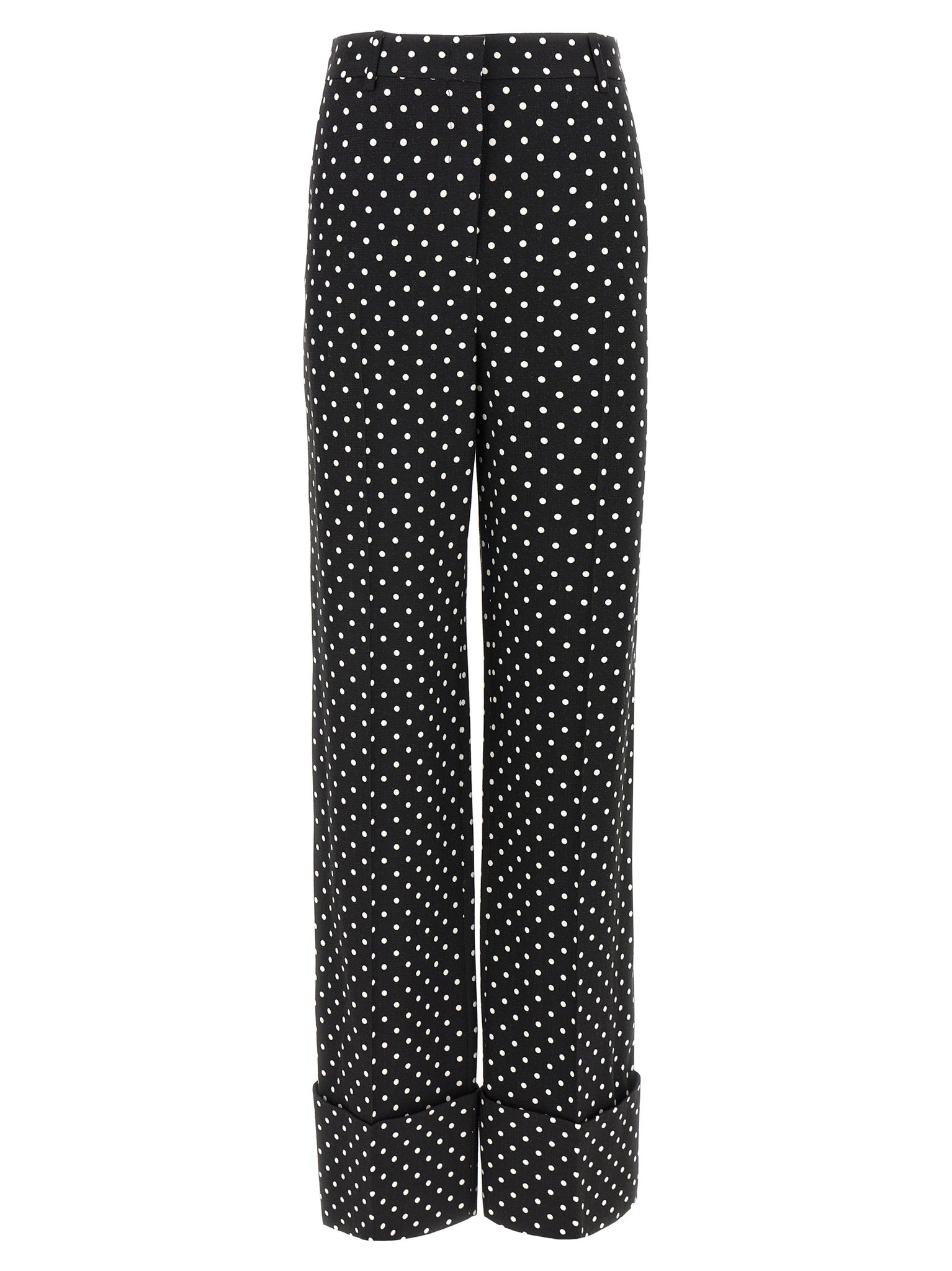 Discover the Valentino Garavani Supergran Pants in White/Black, offering a wide-leg silhouette with stretched pleat and a maxi turn-up that balances modern volume and tailored structure. These trousers fasten with a hook and front button zip closure and include pockets for everyday practicality, while the cut is true to size for straightforward shopping. Crafted for adult women, the design blends striking print with wearable tailoring to guide seasonal outfits with ease.
