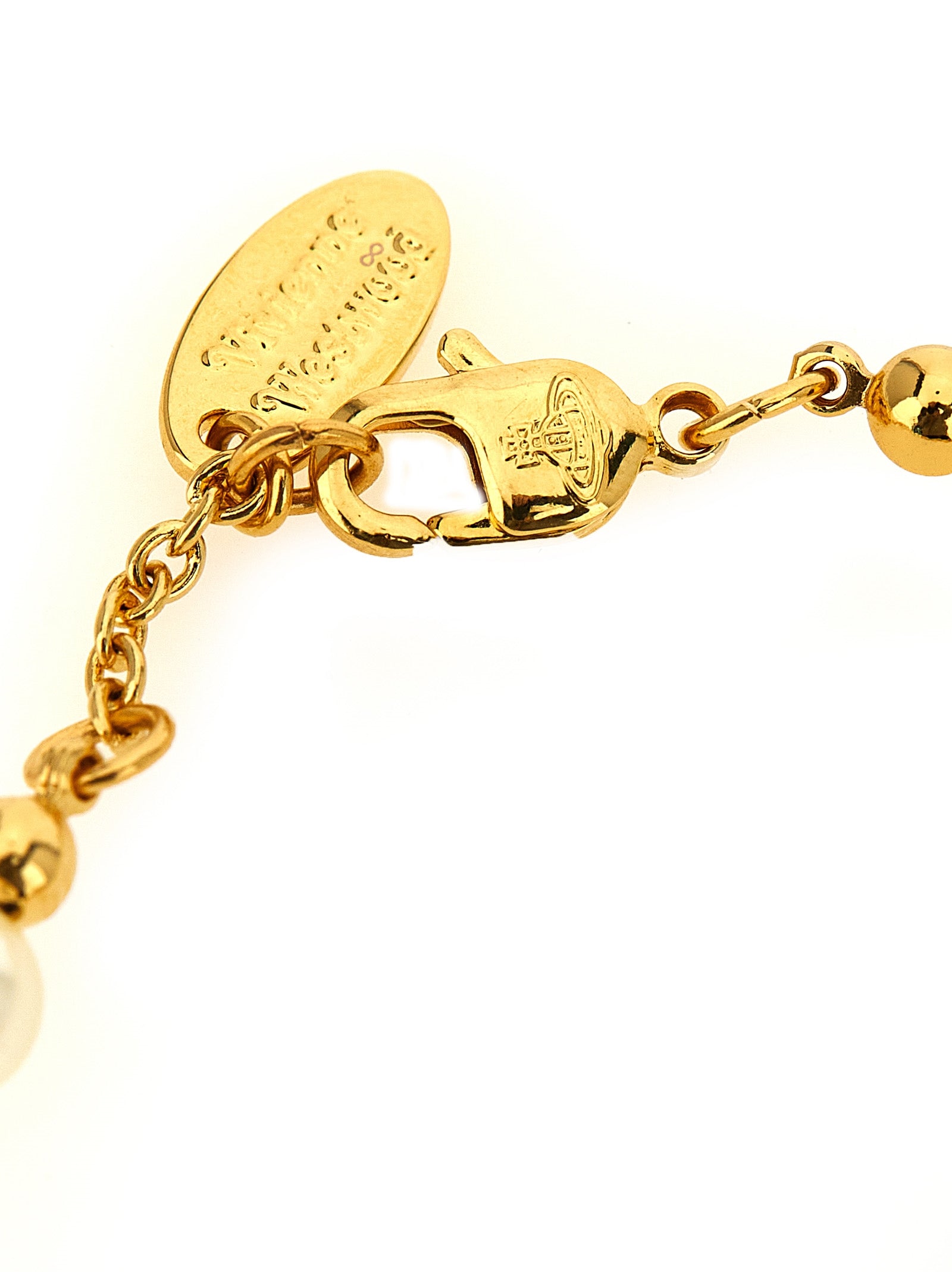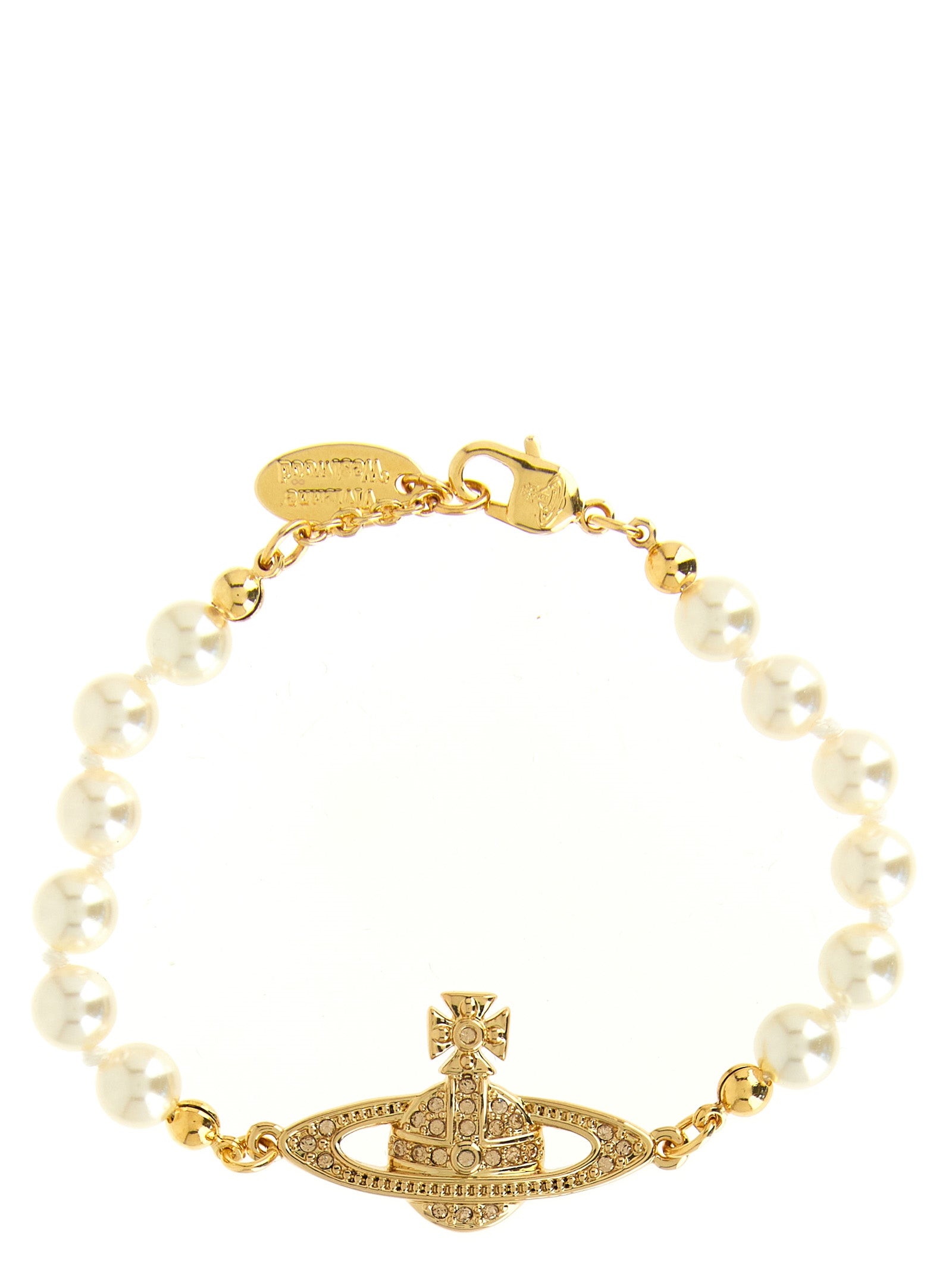Discover refined elegance with the Vivienne Westwood Mini Bas Relief Bracelet, offering a pearl-accented chain and a gold orb pendant set with tone-on-tone crystals. The adjustable closure with links and a snap hook ensures a secure, customizable fit for an adult wrist; total chain length is 17.5 cm. This piece presents a polished, wearable emblem of the brand’s iconic design language.