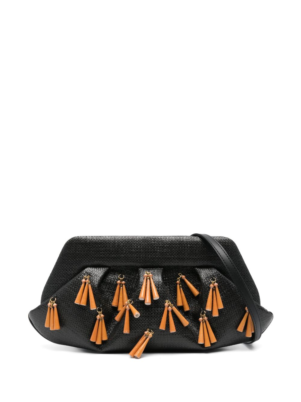 black fringe detailing clasp fastening Emera fringed clutch Size and Fit - Width: 31cm, Height: 18cm, Depth: 7cm. . .