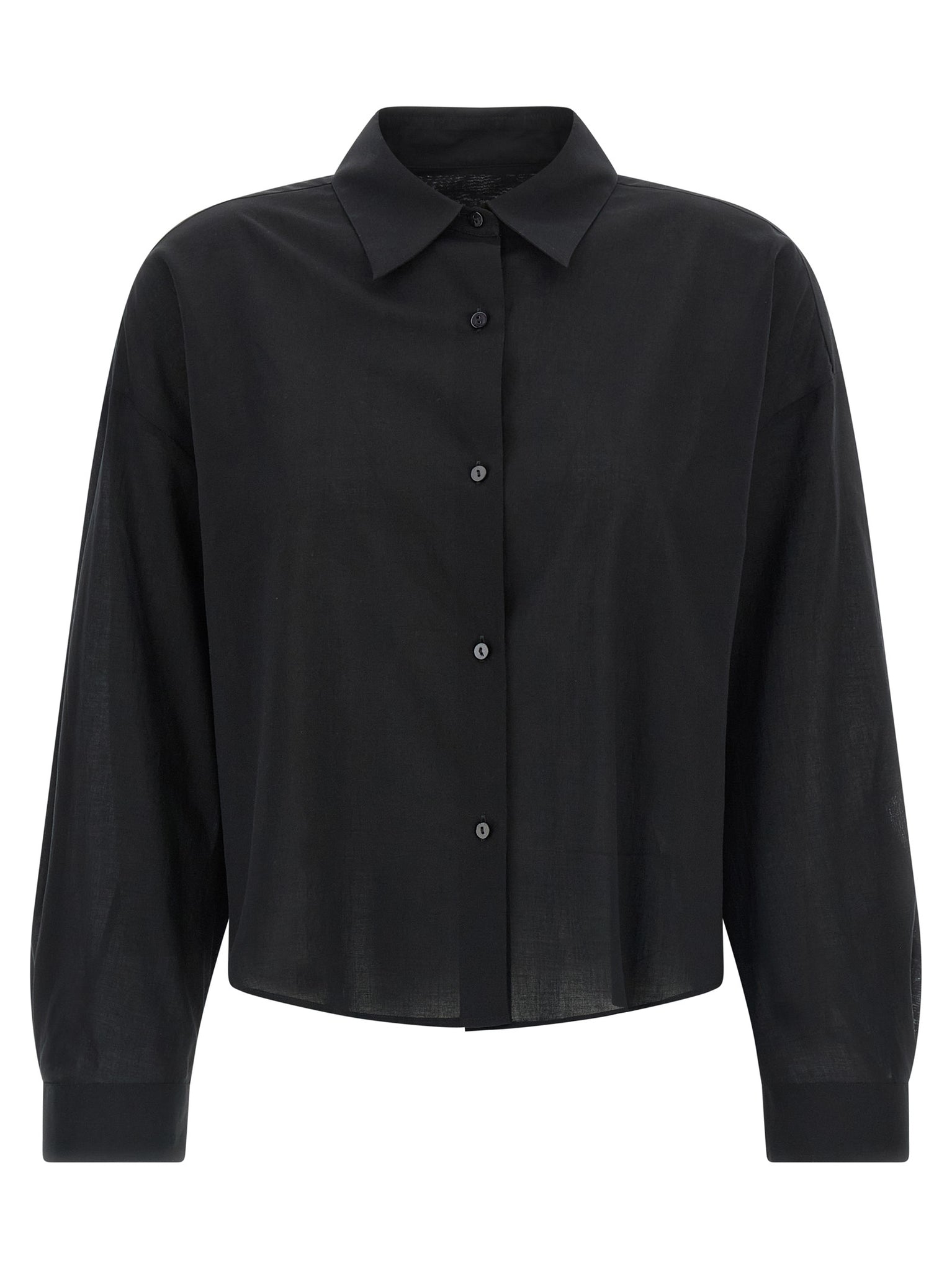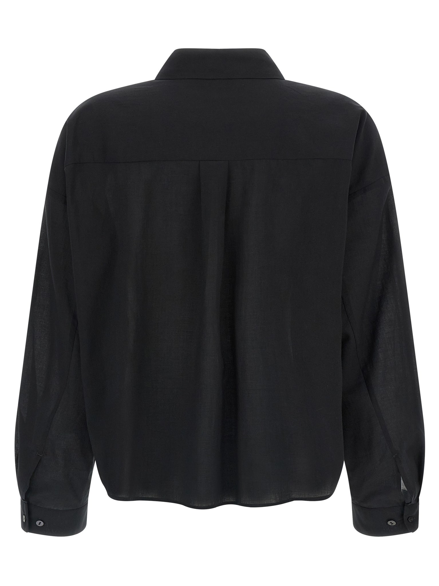 'heather' semi-transparent light cotton shirt, With pointed collar and slightly loose and short fit, Dropped shoulders, Front button closure, Long sleeves with cuffs and buttons. Size and Fit - Boxy fit.Made in: Tunisia