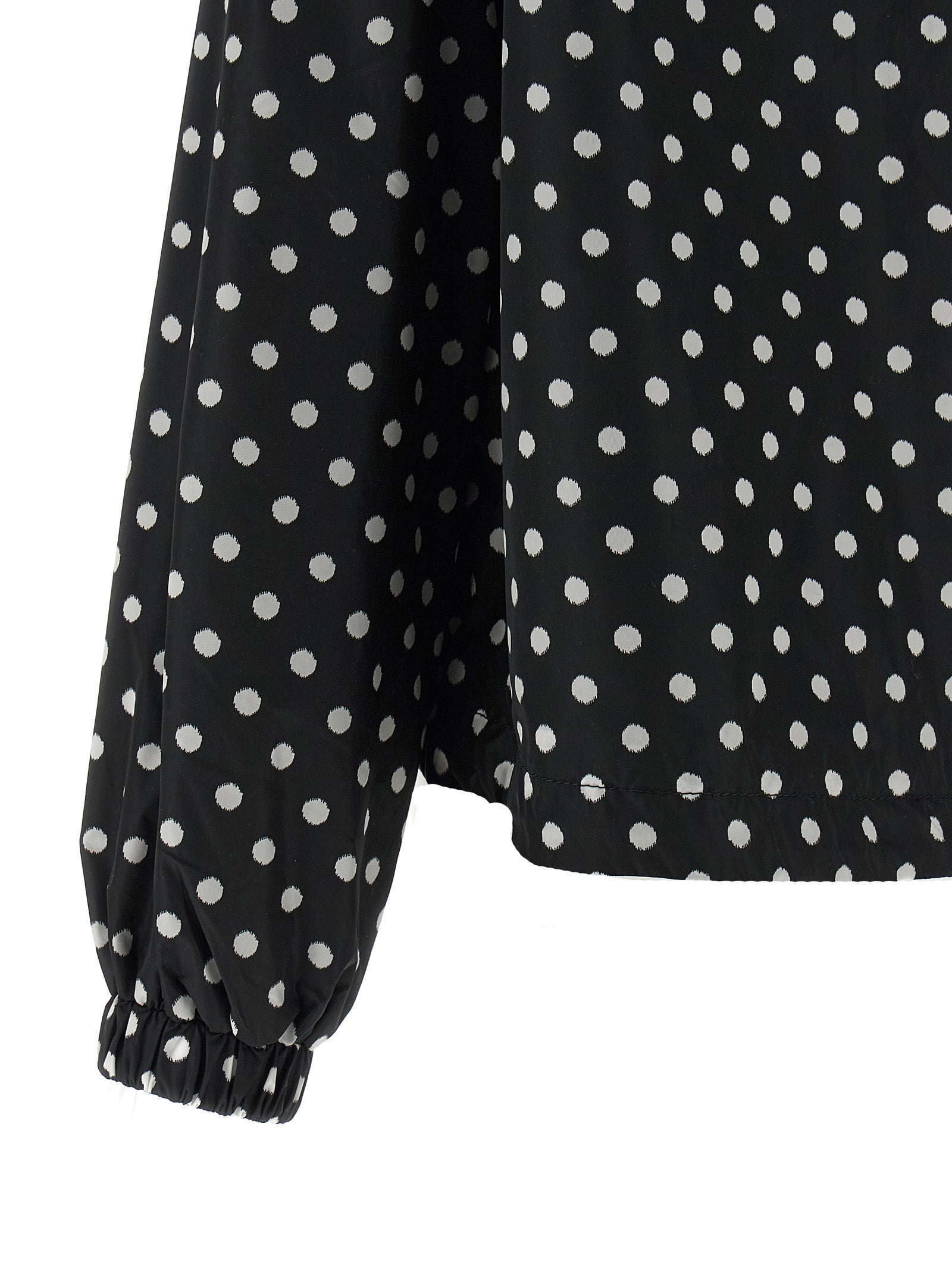 Nylon windbreaker jacket with all-over polka dot print, Hood, Silicone logo patch and zip closure and front snap buttons, Pockets, Long sleeves with elastic cuffs, Drawstring on the hem, Solid nylon lining. Sustainable: product made with recycled polyamide. Size and Fit - Relaxed fit