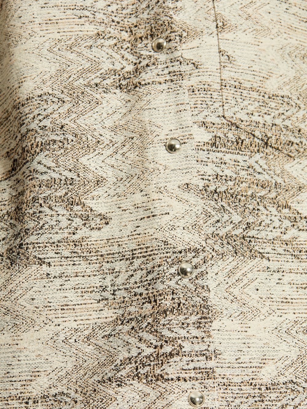 sand beige front press-stud fastening chest patch pocket classic collar shirt sleeves Size and Fit - This piece fits true to size. We recommend you get your regular size. Model is 1,75m / 5ft 8in wearing size 36 (FR)