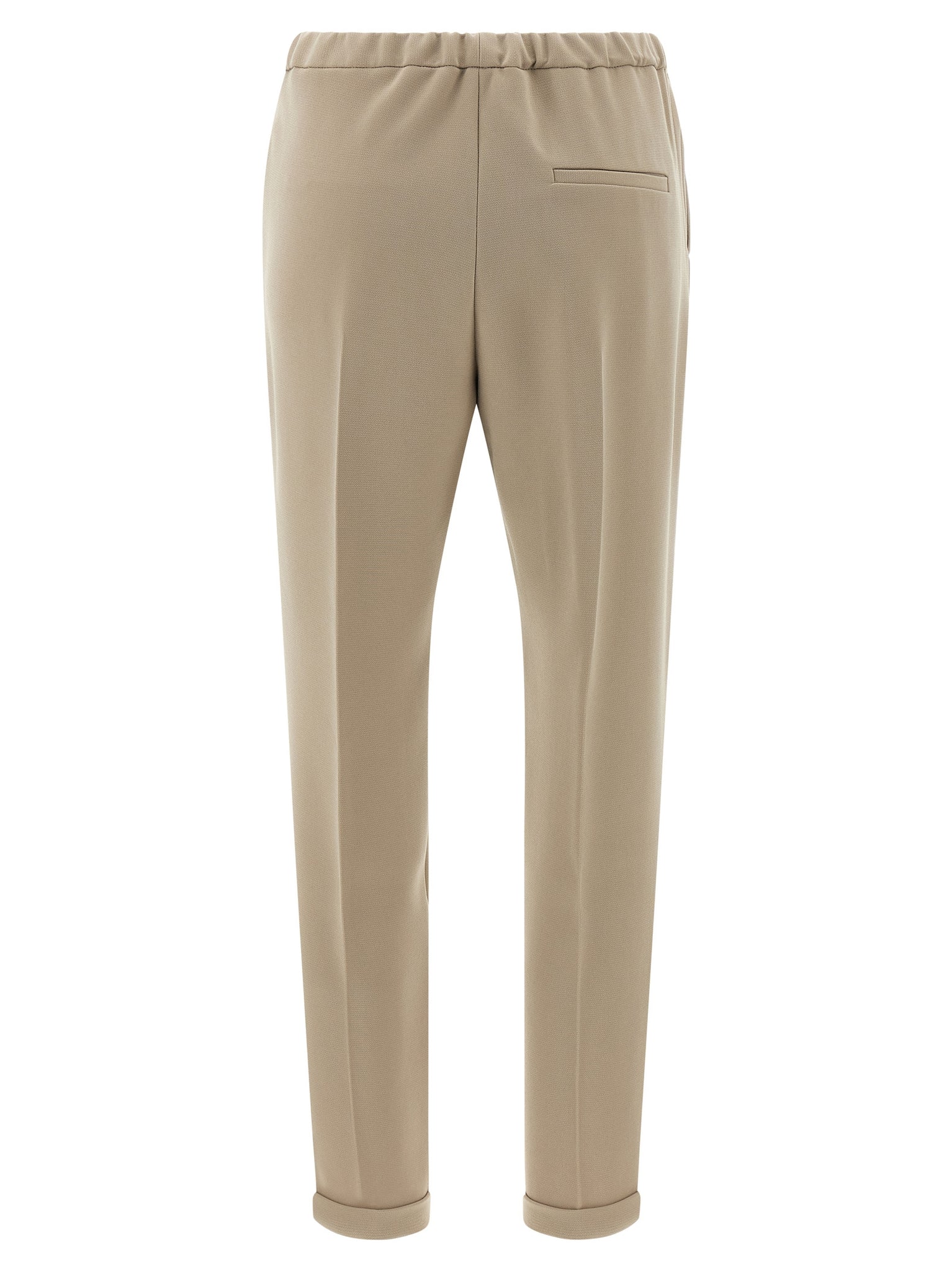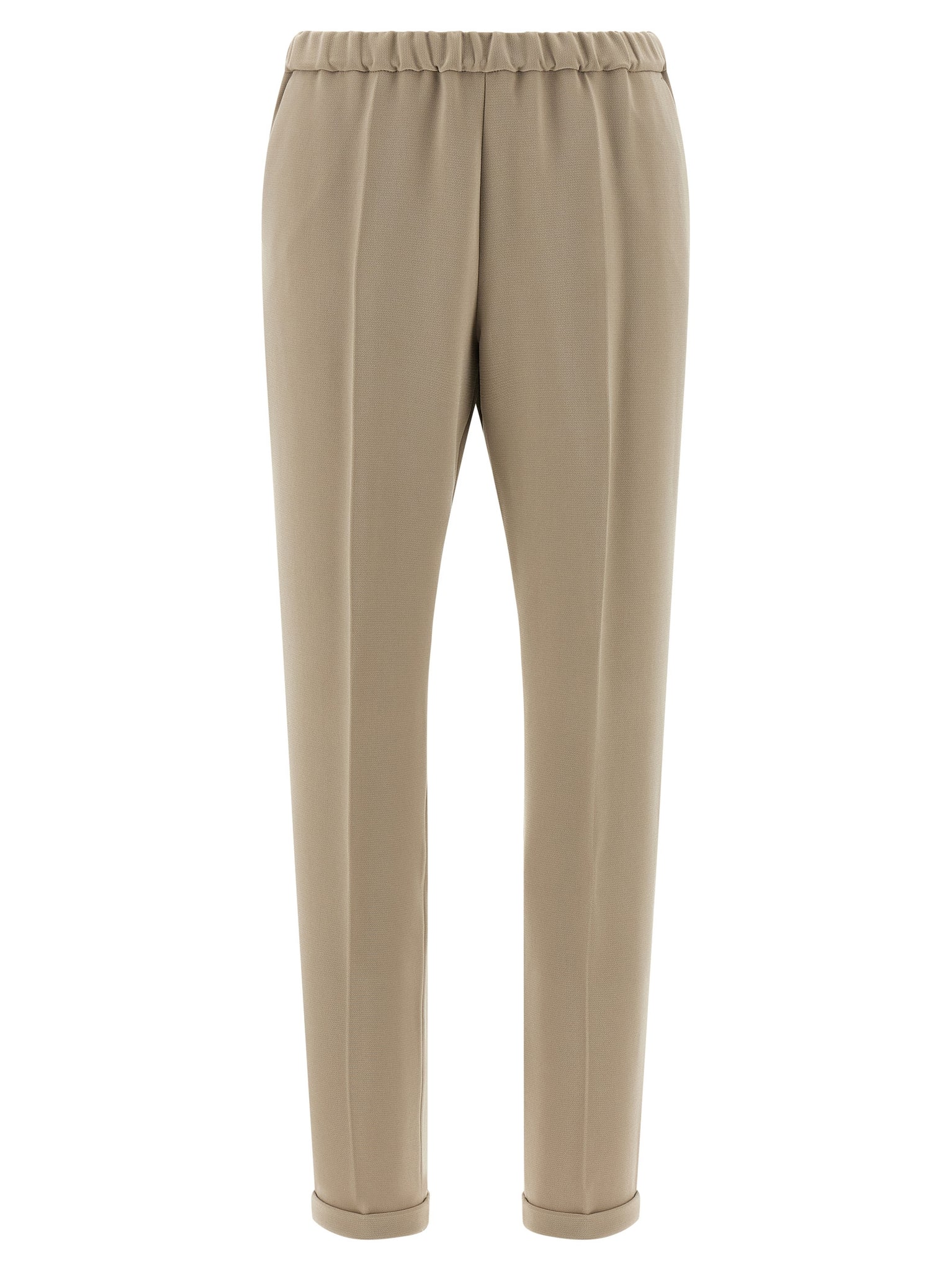 Pants in cadi, elastic waistband, stretched pleat, pockets, turn-up on the leg bottom. Size and Fit - true to size fit