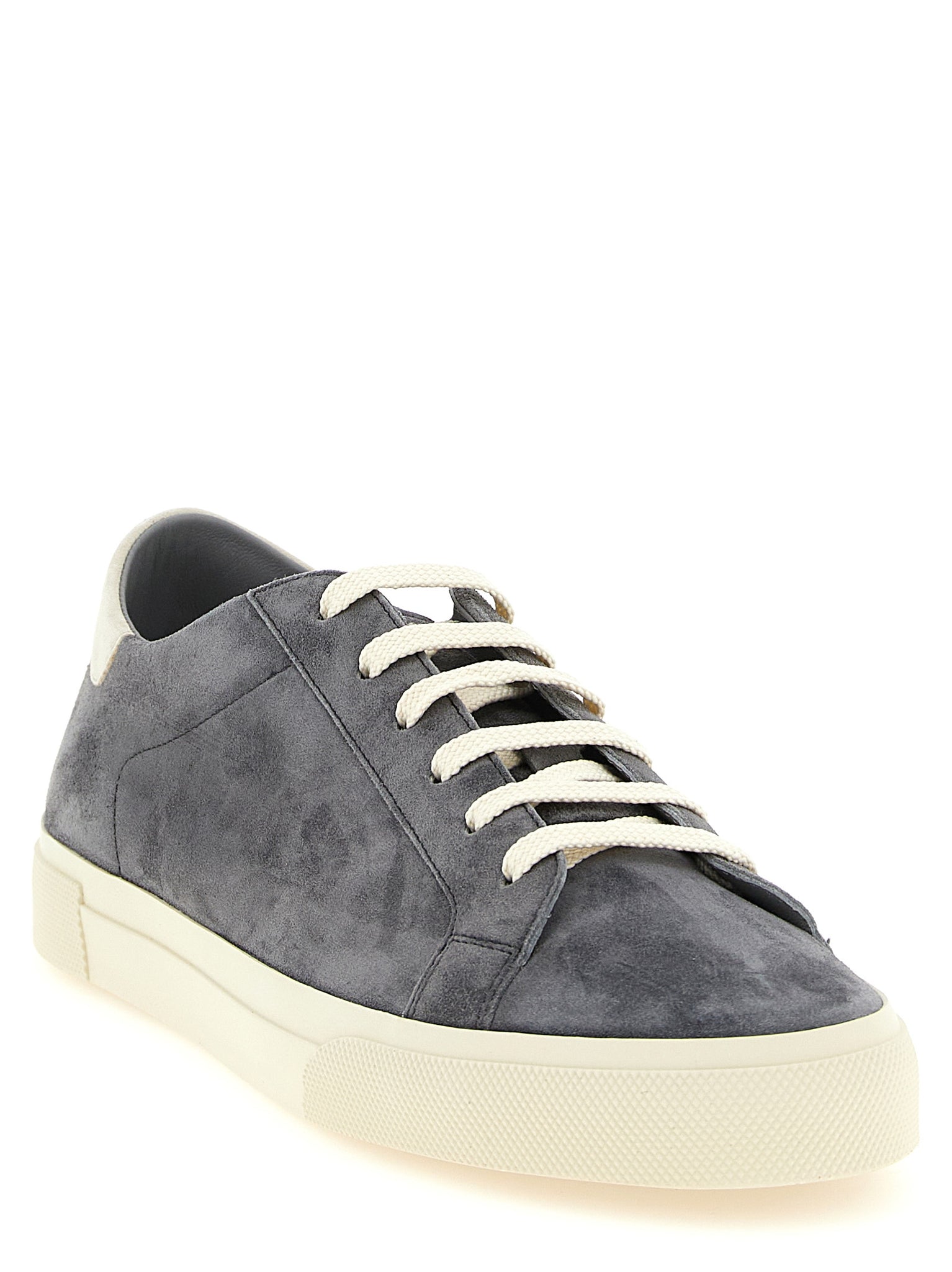 Suede sneakers, leather lining, contrasting heel with embossed logo, lace-up closure, rubber sole. Size and Fit - EU MEN