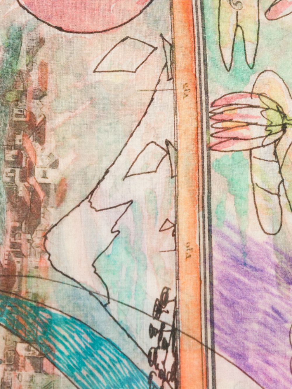 light pink all-over graphic print frayed edge rectangle shape Japan cottone blend stole