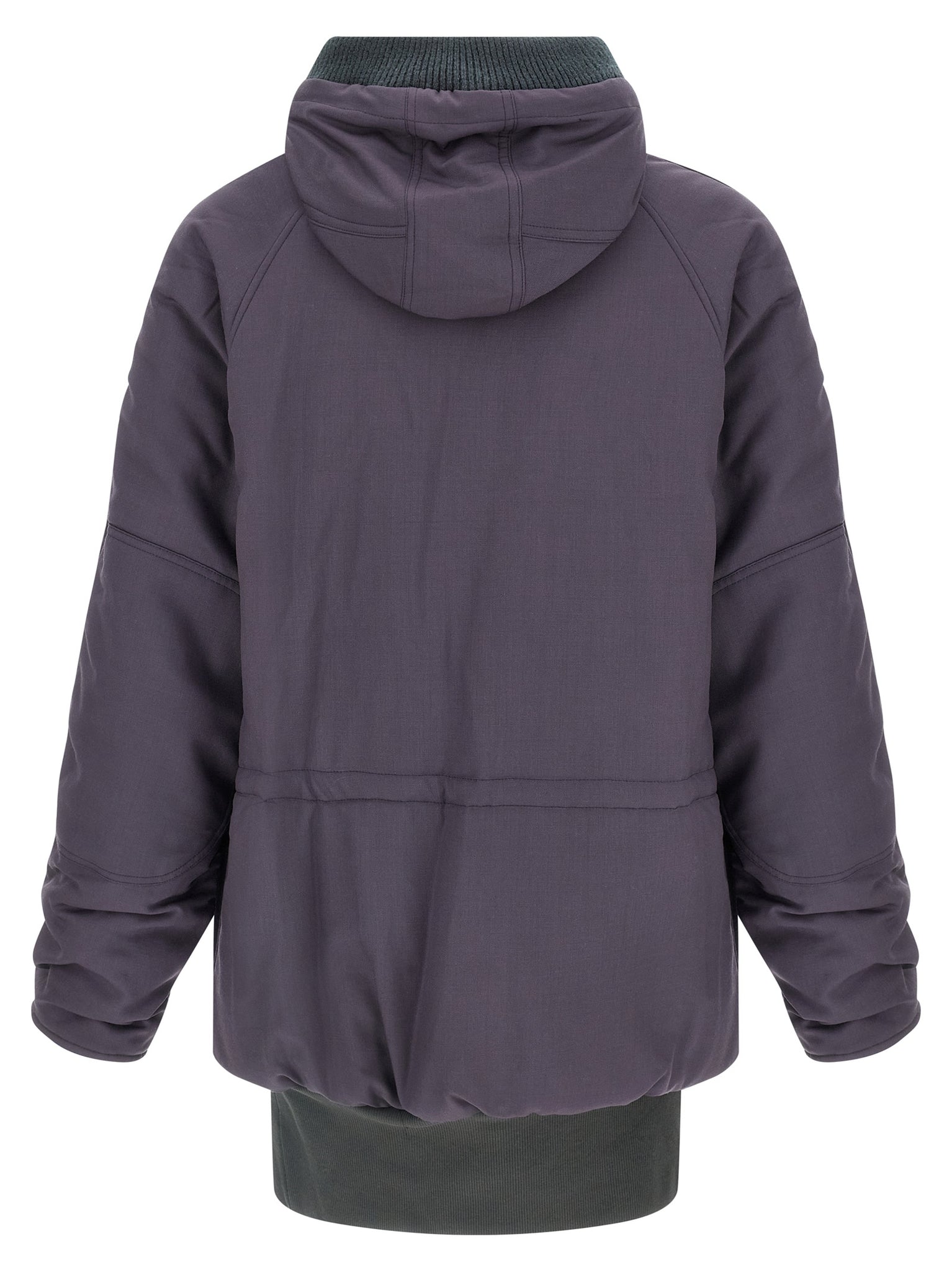 Virgin wool 3/4 kenny parka with contrast ribbed knit details, Padded cotton lining, Adjustable hood, Other collar, Front zip and button closure, Pockets, Long sleeves with inner cuffs, And headband. Size and Fit - true to size fitMade in: Italy