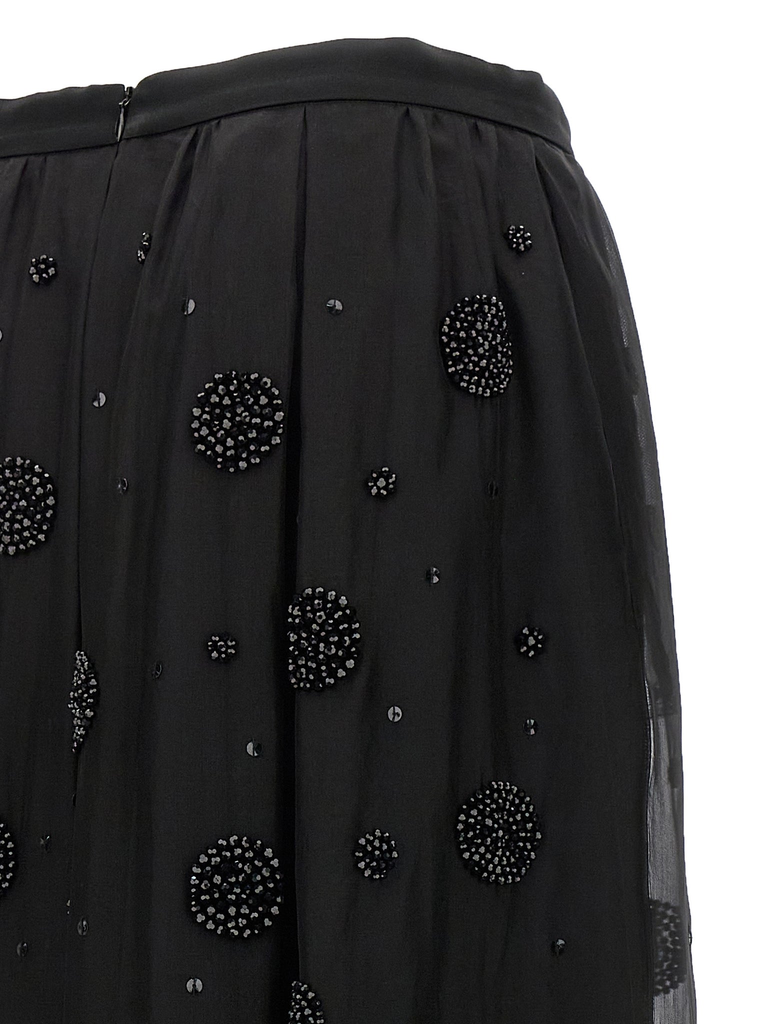 Wilma' organza skirt with all-over rhinestones and micro sequins, Lined model, Back zip closure. Size and Fit - true to size fitMade in: Portugal