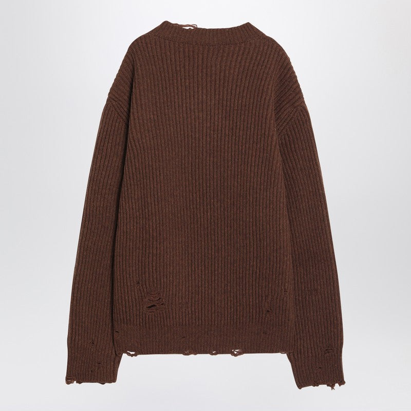 MM6 Maison Margiela Distressed brown wool-blend sweater