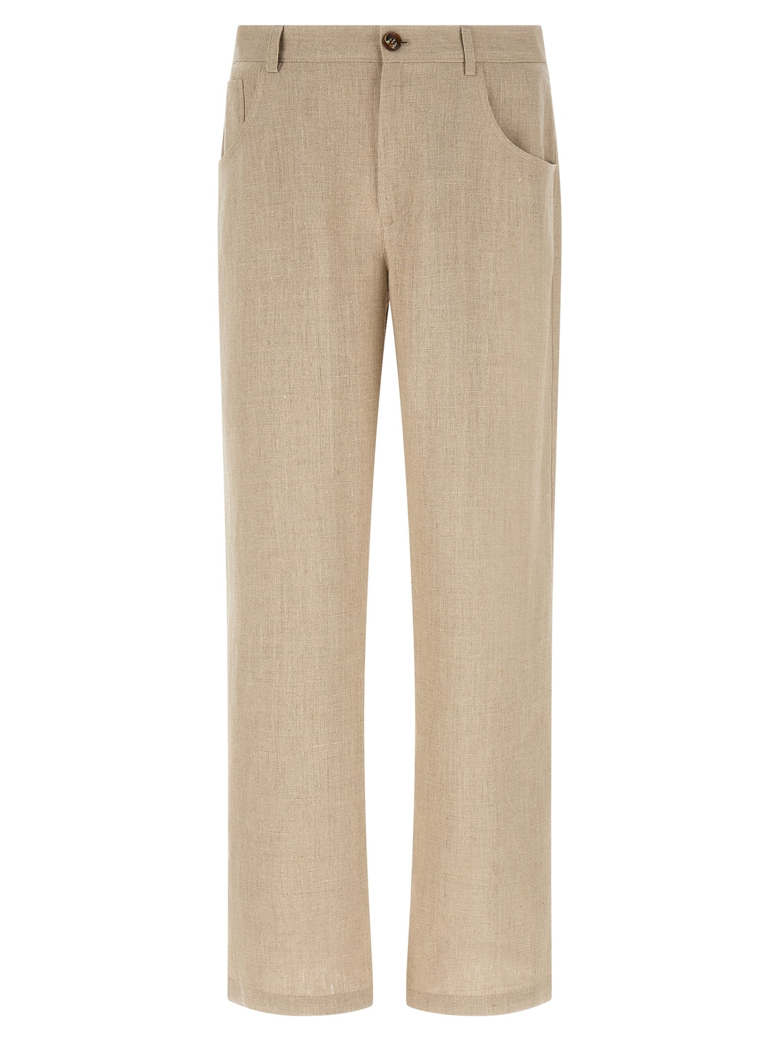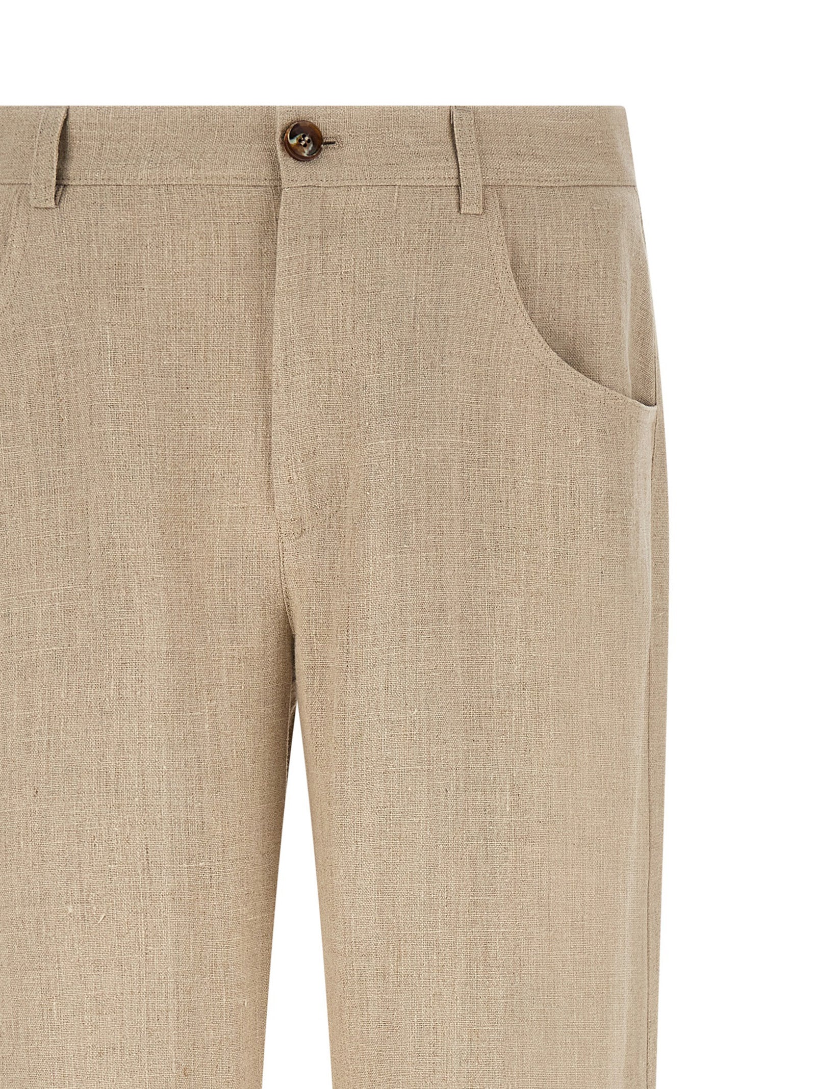Discover tailored linen trousers that combine comfort with a structured silhouette and a regular waist for reliable wear. These beige Arno pants offer a straight, slightly wide leg and practical five-pocket styling with a zip and front button closure for easy dressing. The heavy linen fabric breathes while maintaining shape, and the cut fits true to size for straightforward selection.
