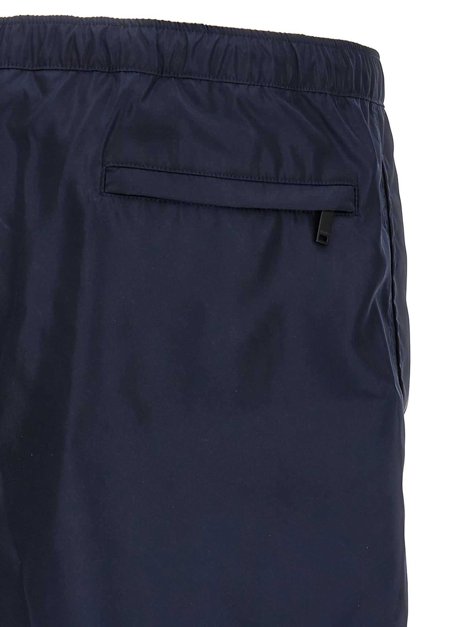 Nylon swimsuit with front 'Chez Valentino' patch, adjustable drawstring elastic at the waist, pockets, trompe l'oeil flap, inner mesh briefs. Size and Fit - true to size fit