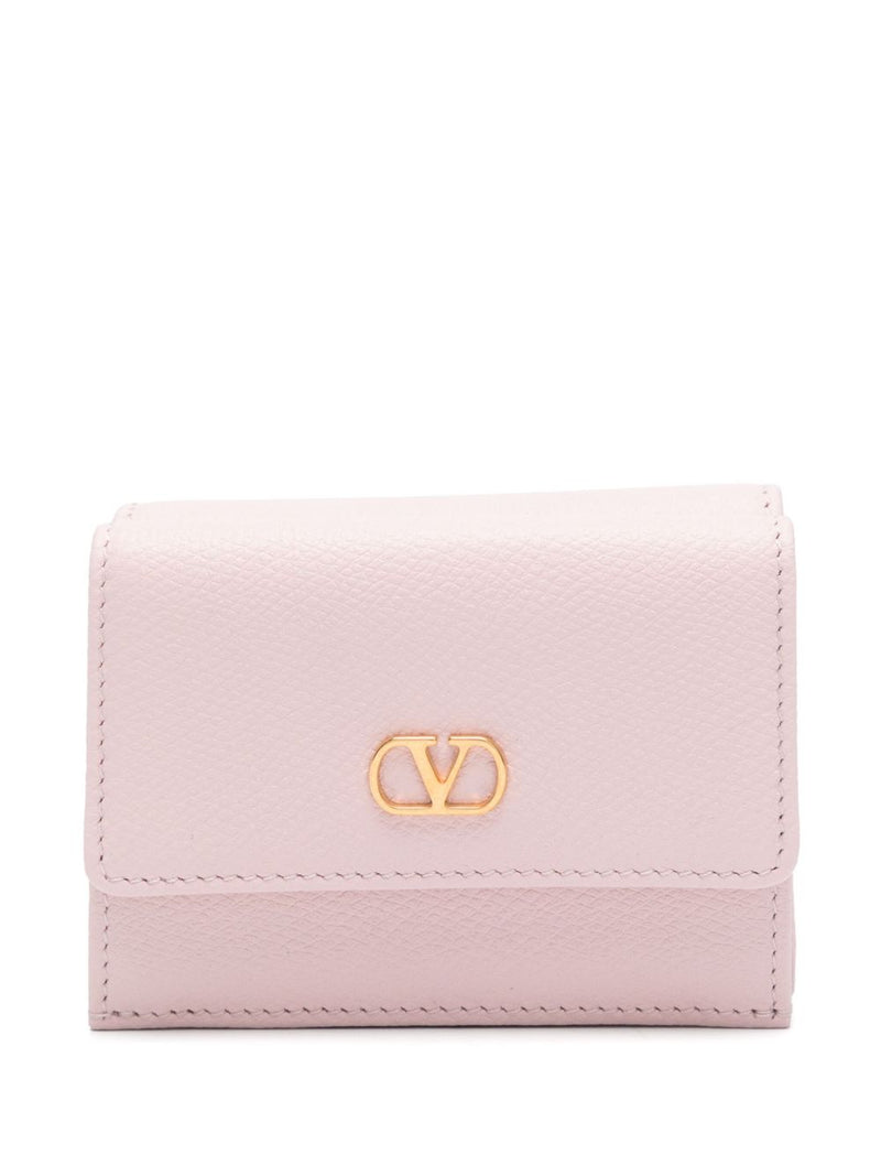 light pink press-stud fastening coin pocket internal card slots internal note compartments trifold VLogo Signature leather wallet Size and Fit - DEPTH: 4.5 Centimetres. HEIGHT: 8.5 Centimetres. WIDTH: 10.8 Centimetres.Made in: Italy