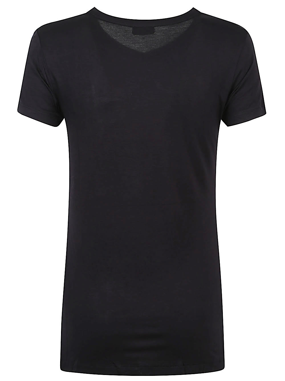 Black T-shirt, short sleeves, elastic, straight hem. scollo v,logo scritta Logo t-shirt Size and Fit - This piece fits true to size. We recommend you get your regular size. Model is 1,75m / 5ft 8in wearing size S