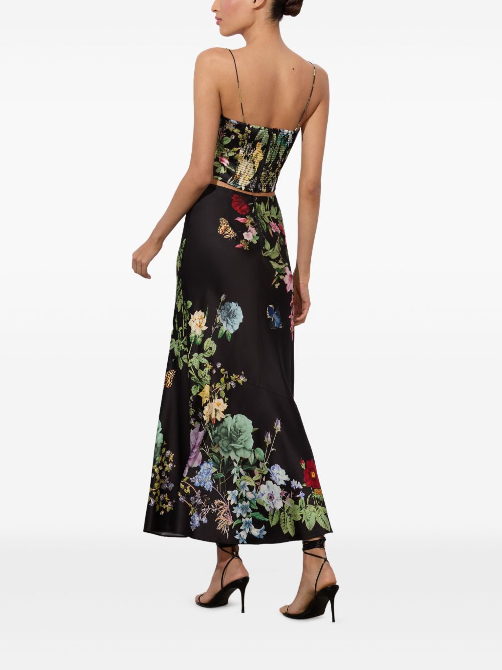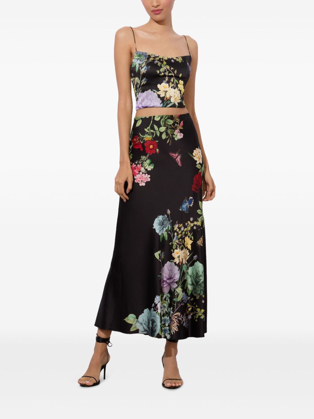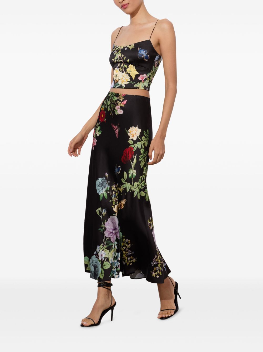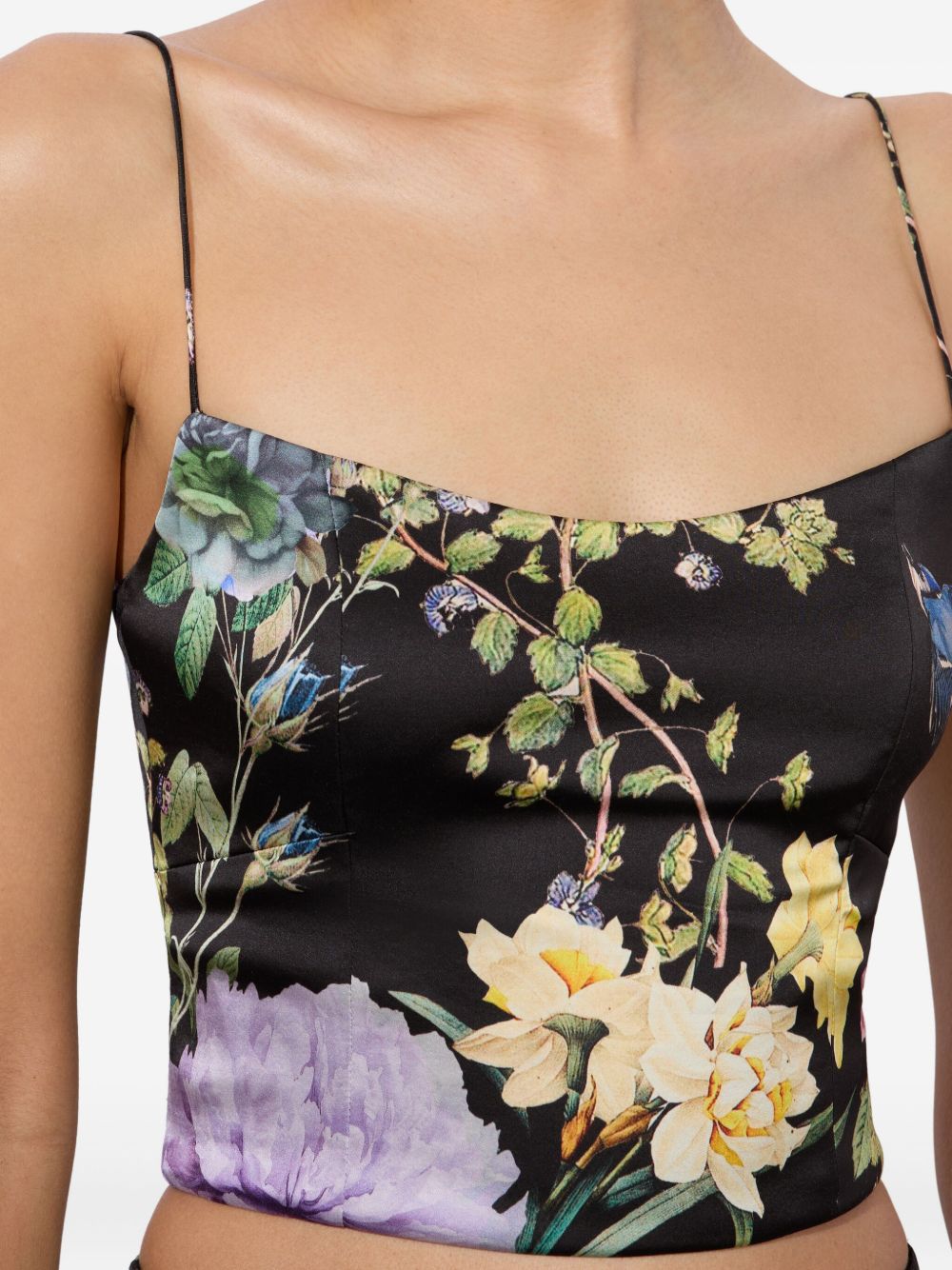 black floral print spaghetti straps square neck cropped Saylor bustier top Size and Fit - This piece fits true to size. We recommend you get your regular size. Model is 1,75m / 5ft 8in wearing size 4 (US)