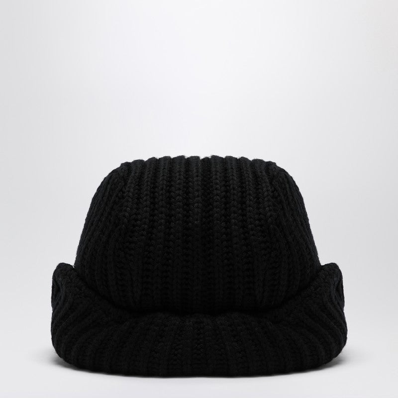 Black wool Needles visor hat with ribbed design, ear flaps and logo embroidery on the front.