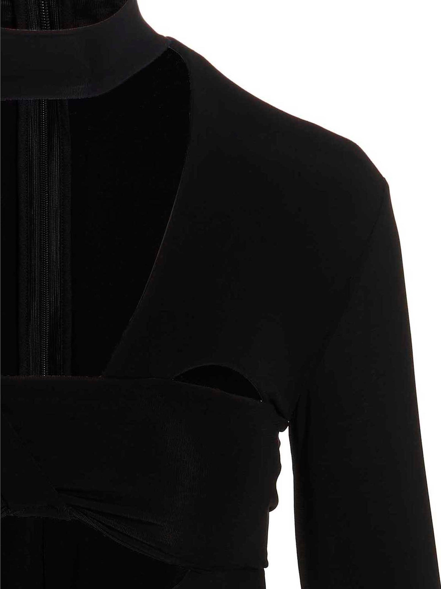 Heart Shaped Gloves' stretch viscose bodysuit with collar, front neckline with cut-out details, back zip closure and buttons and long sleeves with gloves.ves with gloves. Size and Fit - True to size fit