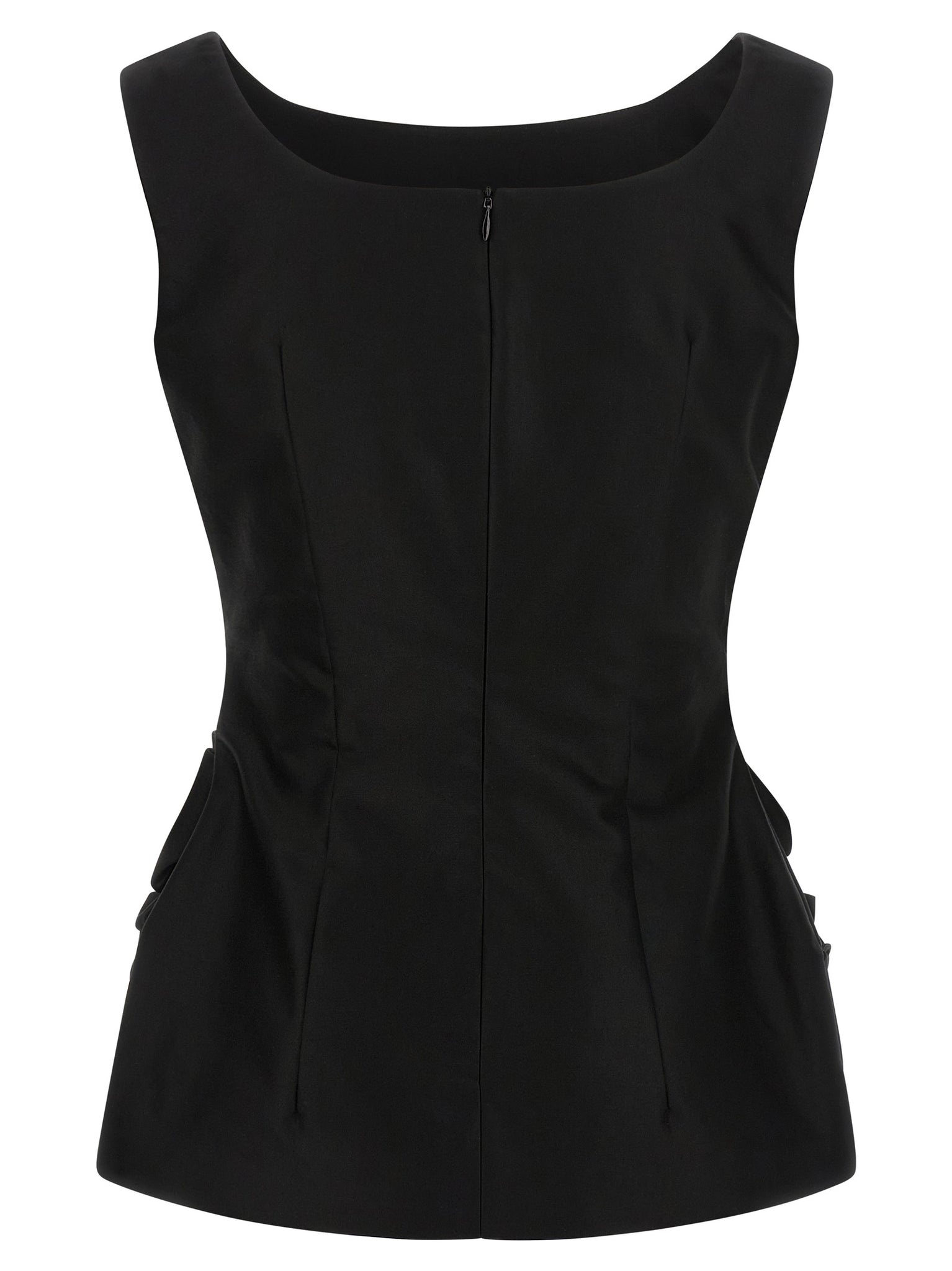 Discover a tailored hourglass silhouette in the Magda Butrym 05 Top, made from a cotton and viscose blend with silk lining for refined comfort. The square neckline, tailored pinces and back zip create a structured fit while pockets feature subtle 3D floral detailing for visual interest. Designed to fit true to French sizing, this black top pairs easily with skirts or tailored trousers for polished seasonal looks.