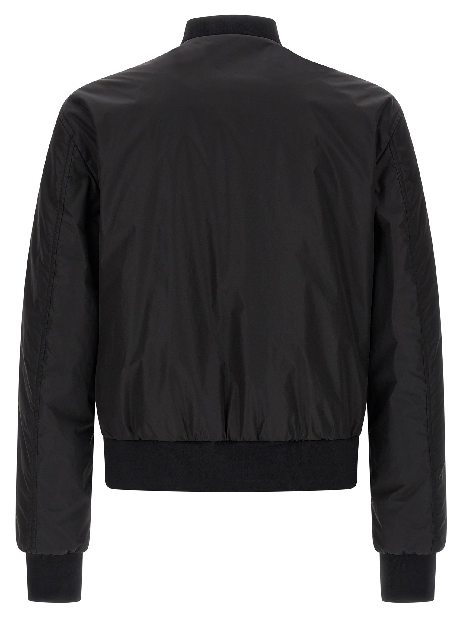 Lightly padded bomber jacket in technical fabric with ribbed stretch knit details, 'dg' patch and front zip closure, Pockets, Long cuffed sleeves, And headband. Size and Fit - true to size fitMade in: Italy