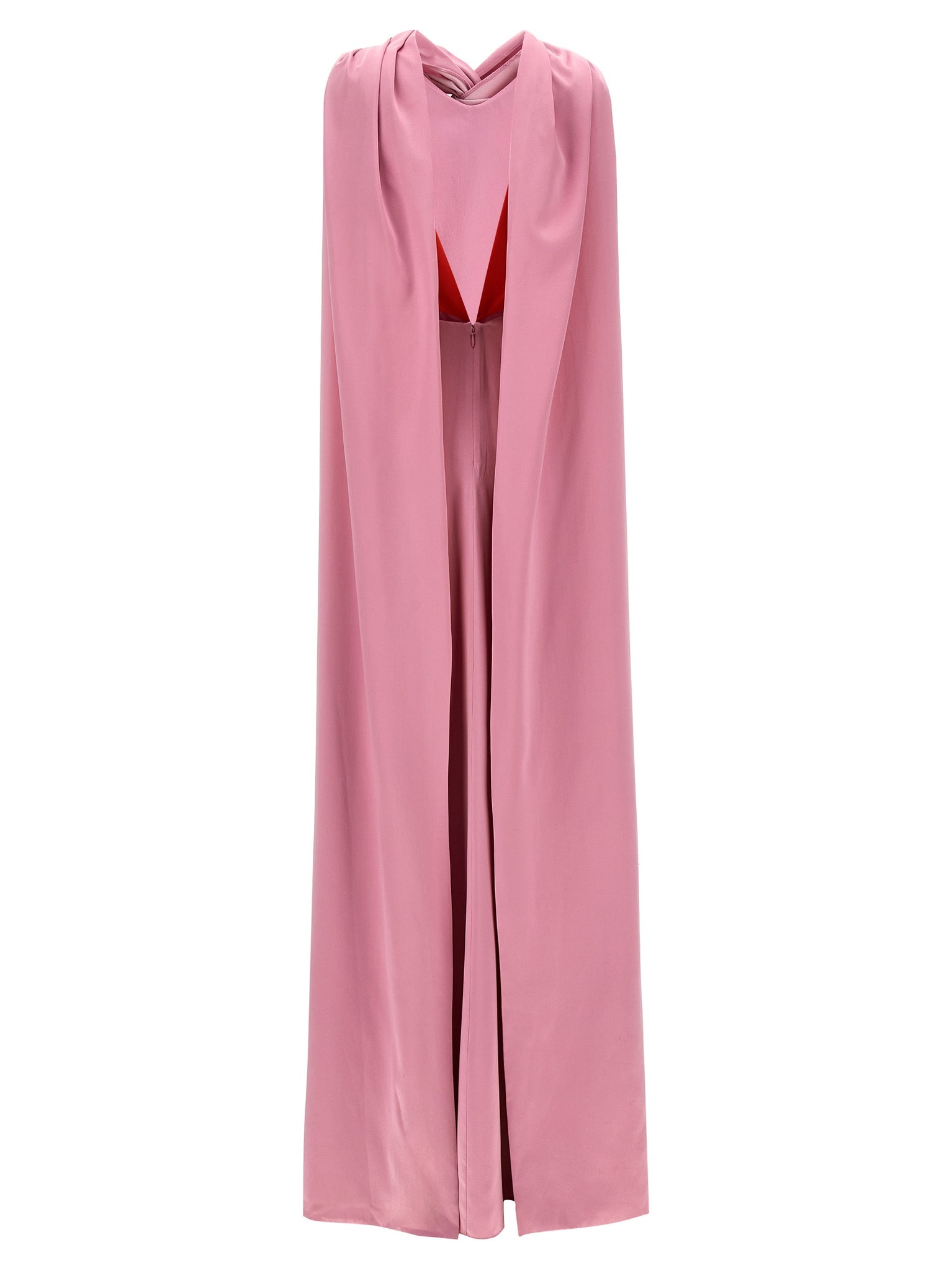 Long 'amanita' silk dress with cape and contrast lining. Sleeveless model with knot detail on the chest. Size and Fit - true to size fit UK size