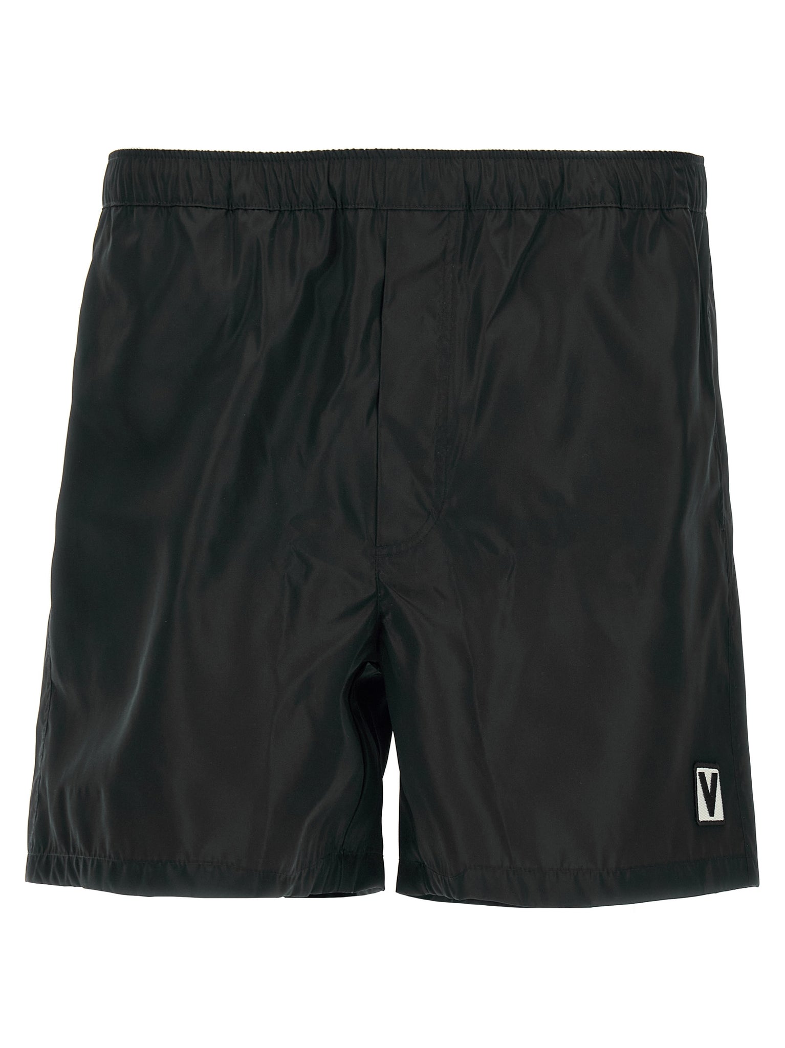 Nylon swimsuit with front 'chez valentino' patch, Adjustable drawstring elastic at the waist, Pockets, Trompe l'oeil flap, Inner mesh briefs. Size and Fit - true to size fitMade in: Italy