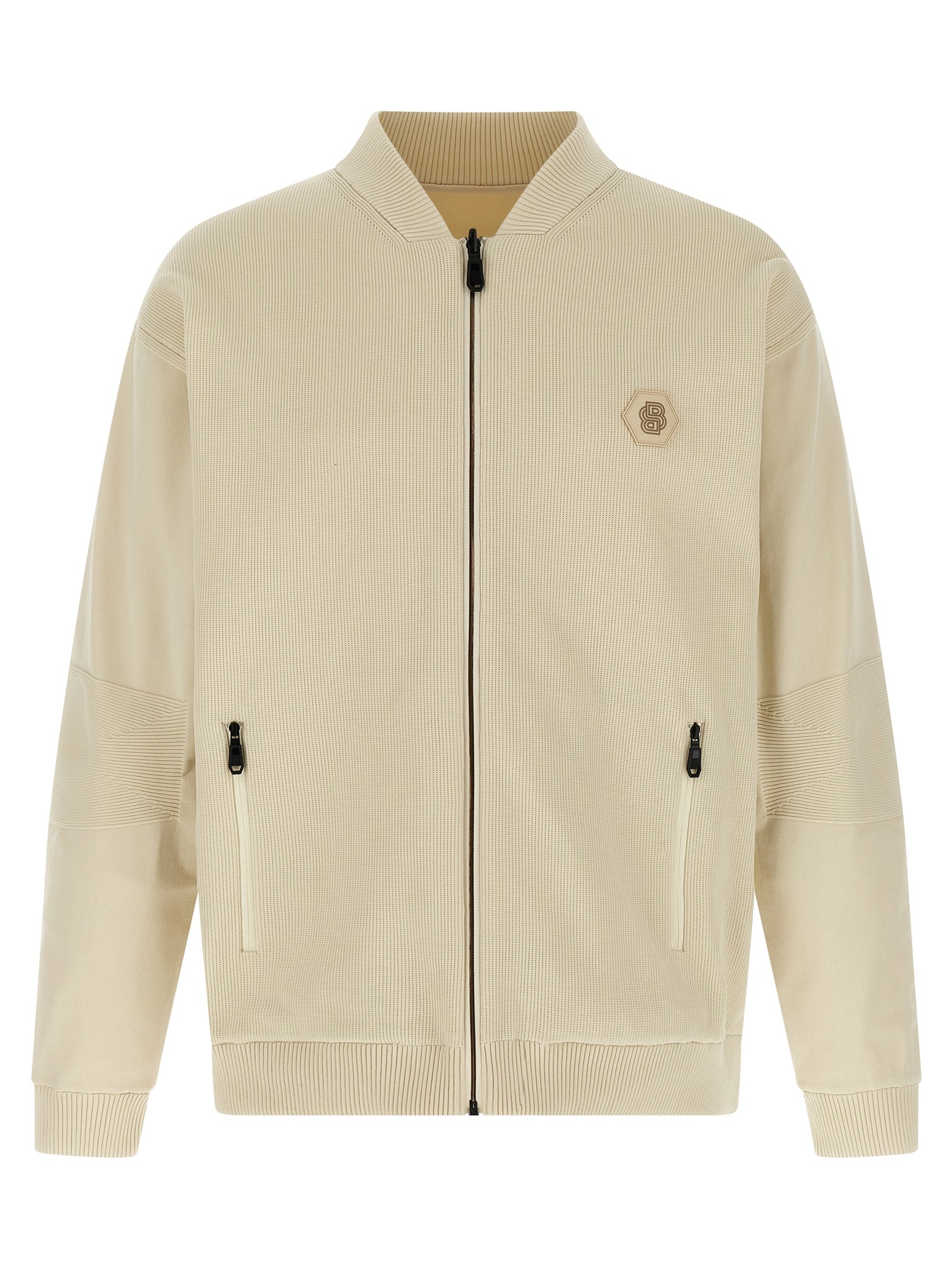 'future' reversible bomber jacket in technical fabric with honeycomb and nylon front, Tone-on-tone ribbed stretch knit details, Silicone logo patch and front zip closure, Pockets, Long cuffed sleeves, And headband. Size and Fit - true to size fit