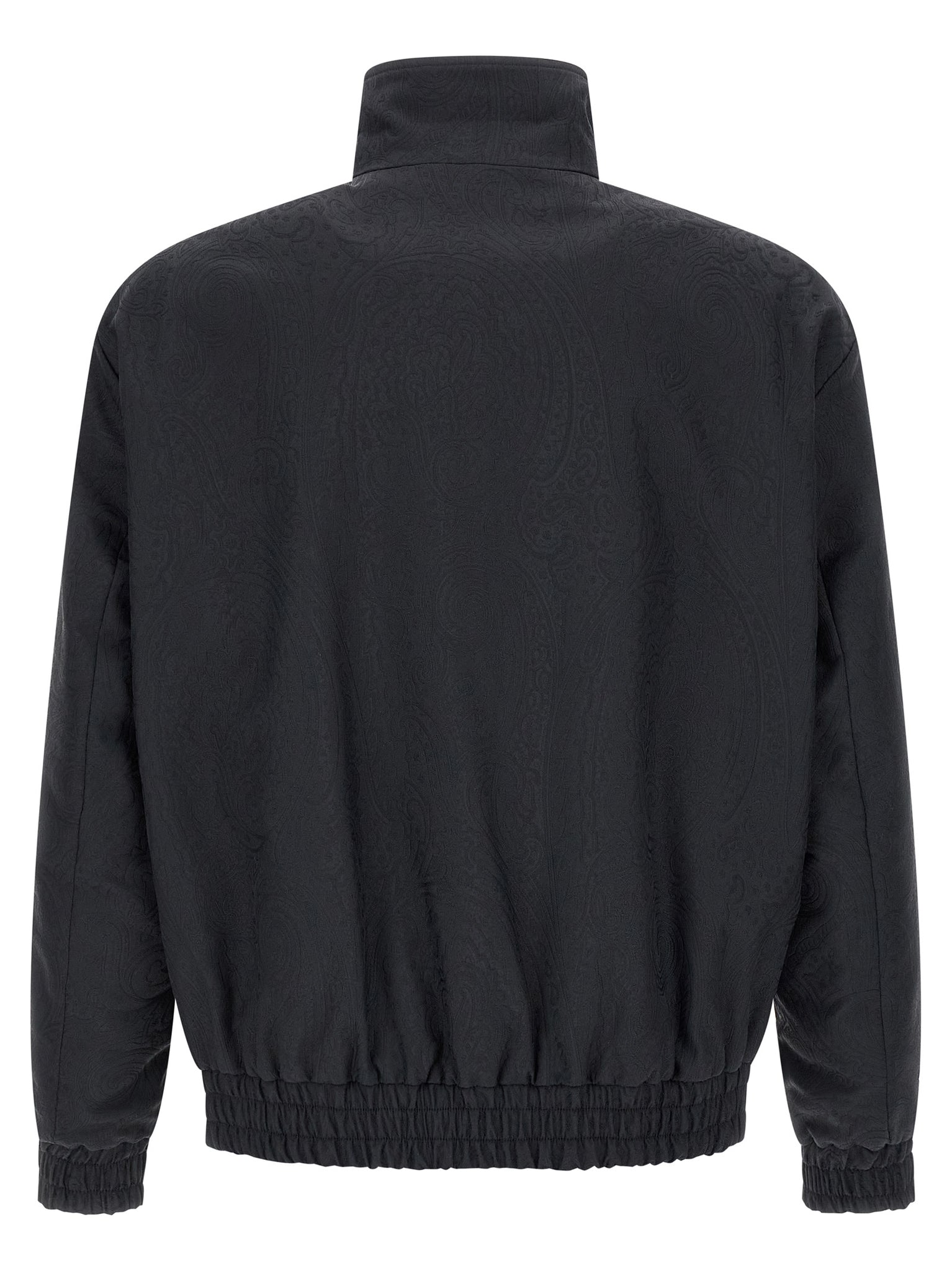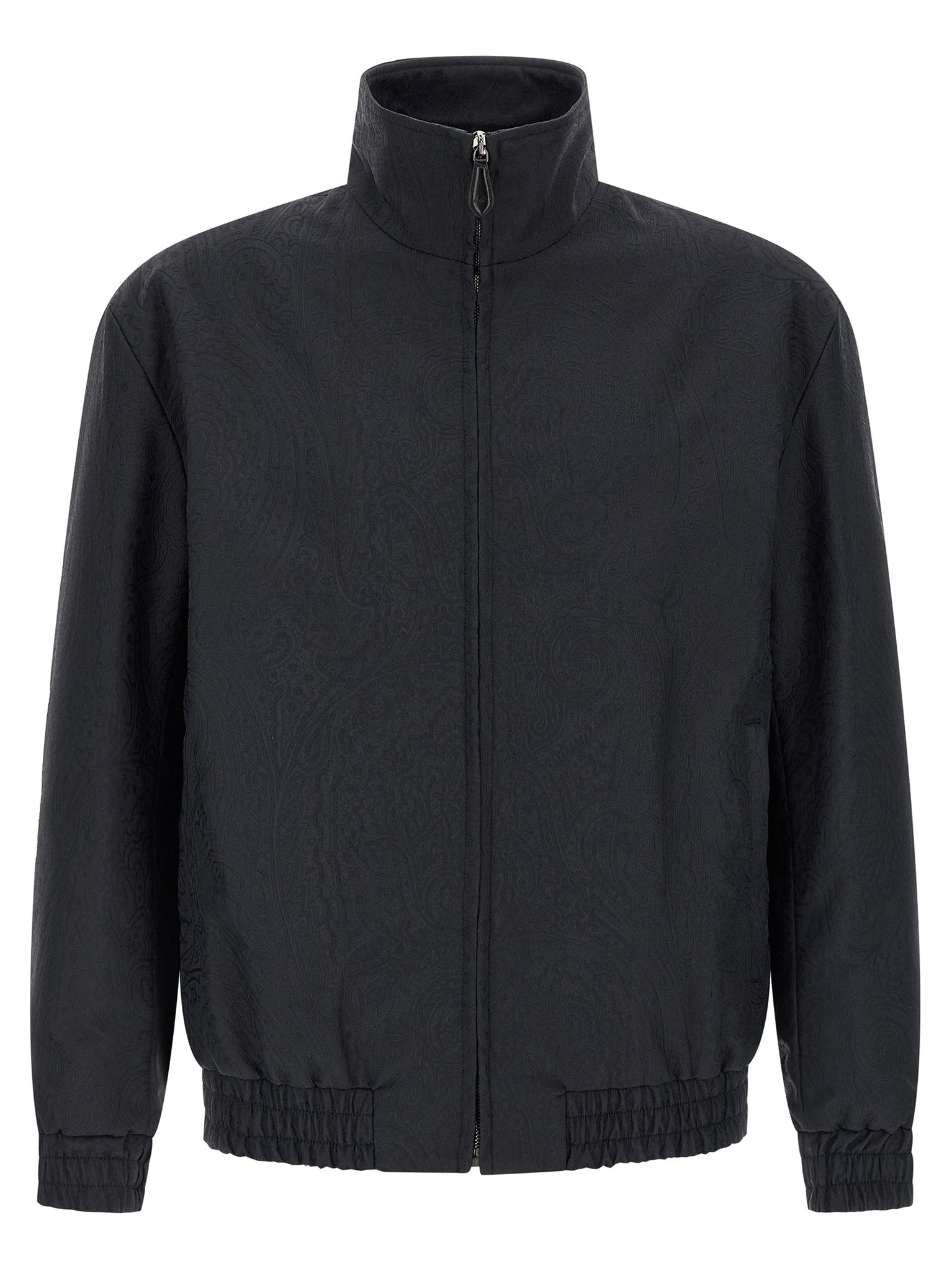 'arnica' jacket in durable tech fabric with iconic tone-on-tone paisley jacquard pattern, High neck, Front zip closure, Pockets, Long sleeves with elastic cuffs, Elastic hem, Striped viscose lining. Size and Fit - true to size fit