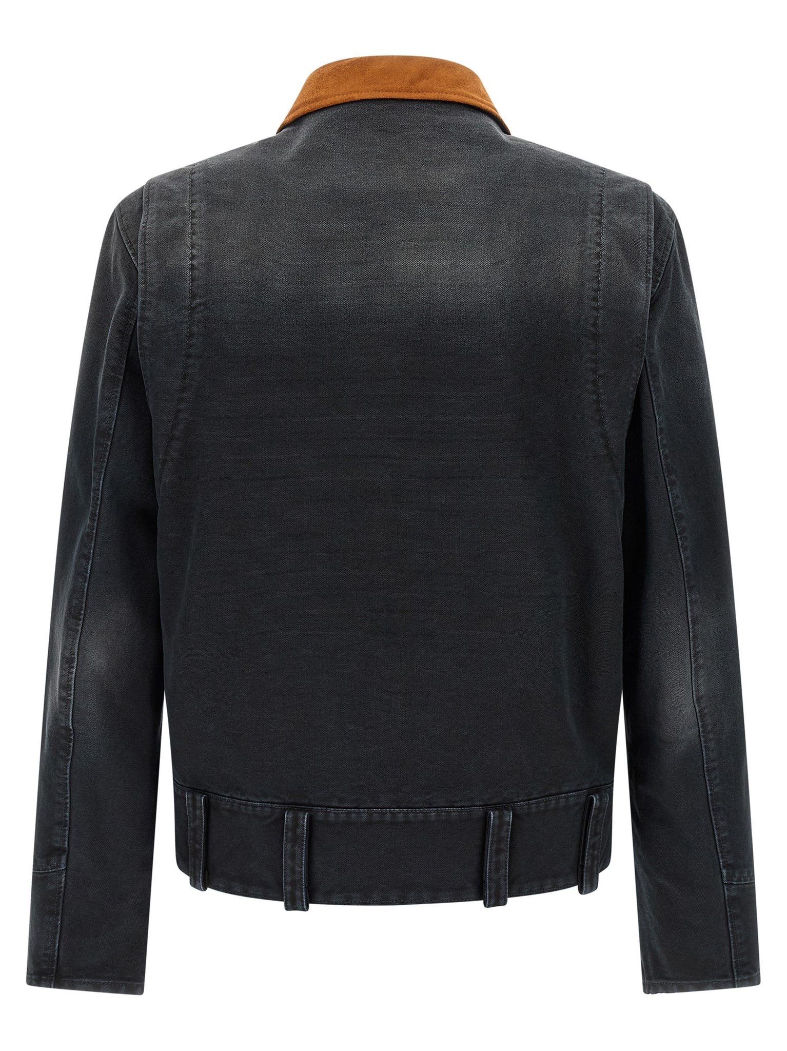 Compact cotton canvas jacket dyed in a used-effect garment, Workwear model, Contrast suede shirt collar, Logo patch and front zip closure, Pockets, Long sleeves with cuffs, Band on the hem. Size and Fit - true to size fit