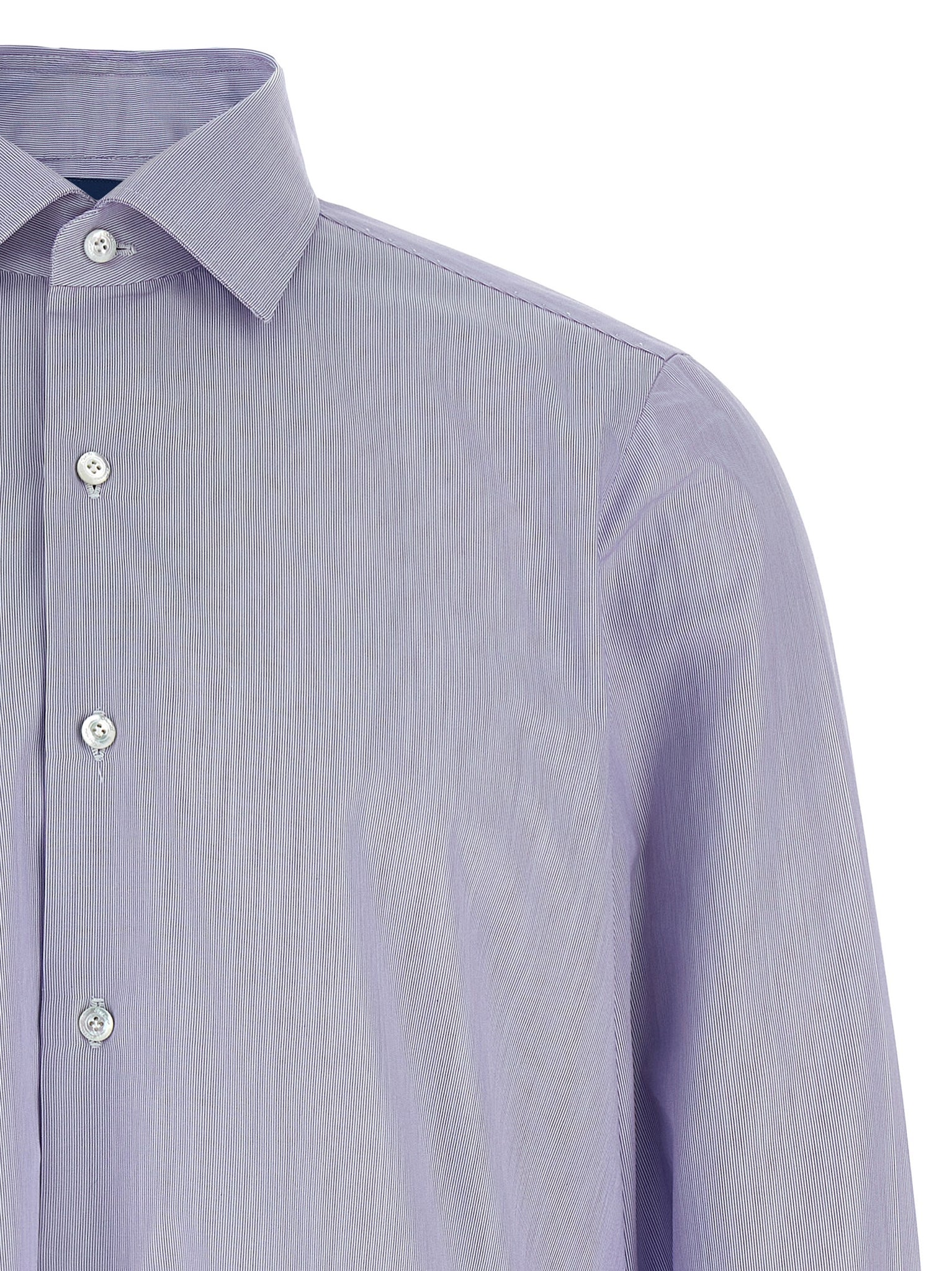 'napoli' striped cotton shirt with button closure, Long cuffed sleeves, Contrast satin logo detail on the side slits. Size and Fit - True to size fit Collar sizeMade in: Italy